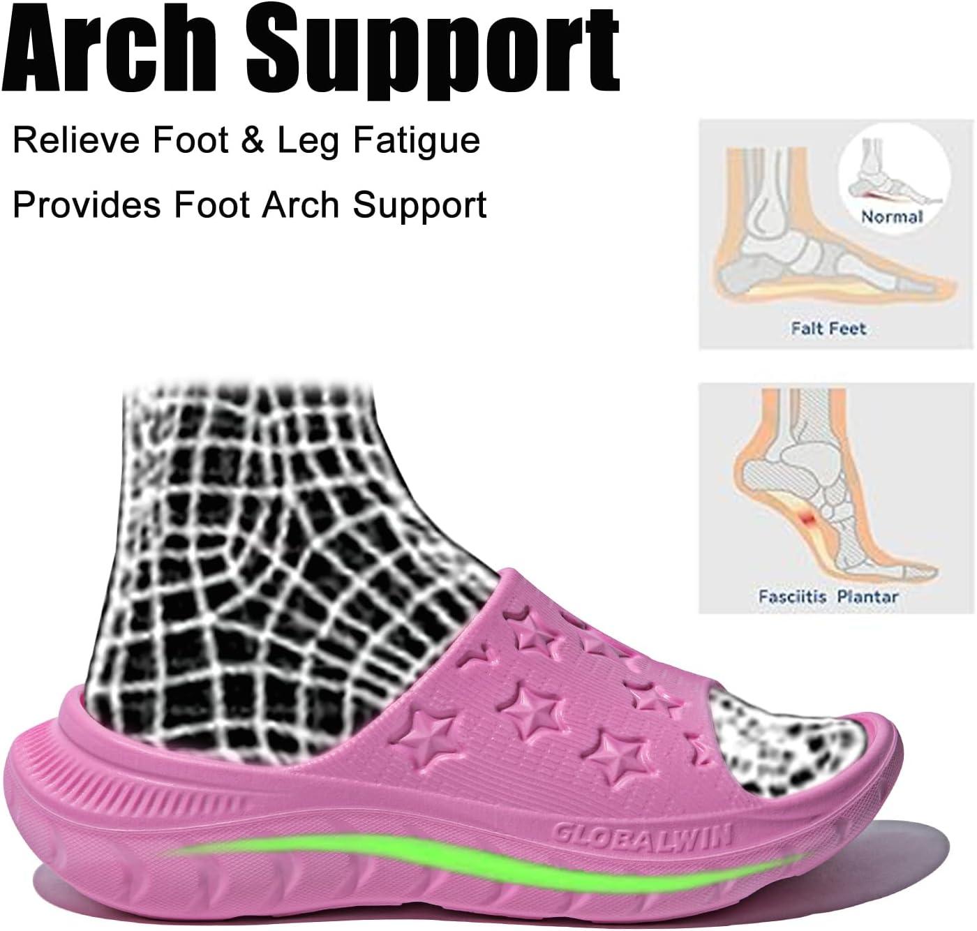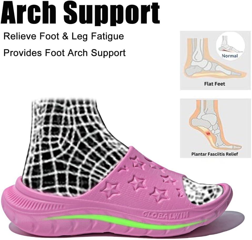 GLOBALWIN Sports Recovery Slides For Women Mia Sandals With Comfortable Arch Support Indoor Outdoor Cloud Slippers Reduce Stress on Feet Lightweight