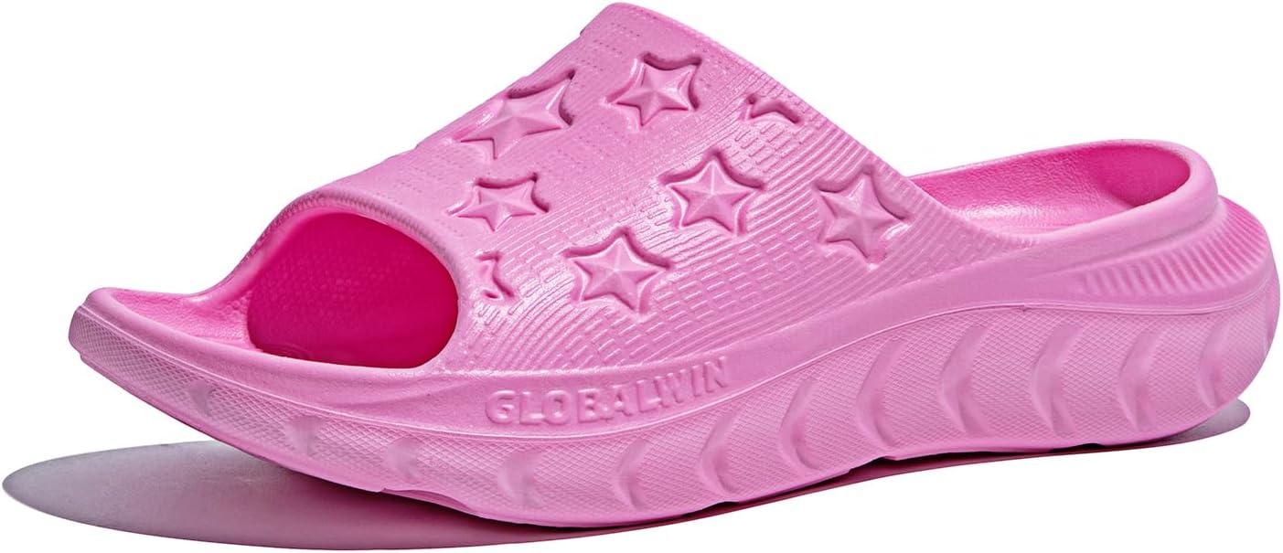 GLOBALWIN Sports Recovery Slides for Women Ava Sports Sandals With Comfortable Arch Support Indoor Outdoor Cloud Slippers Reduce Stress on Feet Lightweight Pillow Slides(Ss231 Pink)