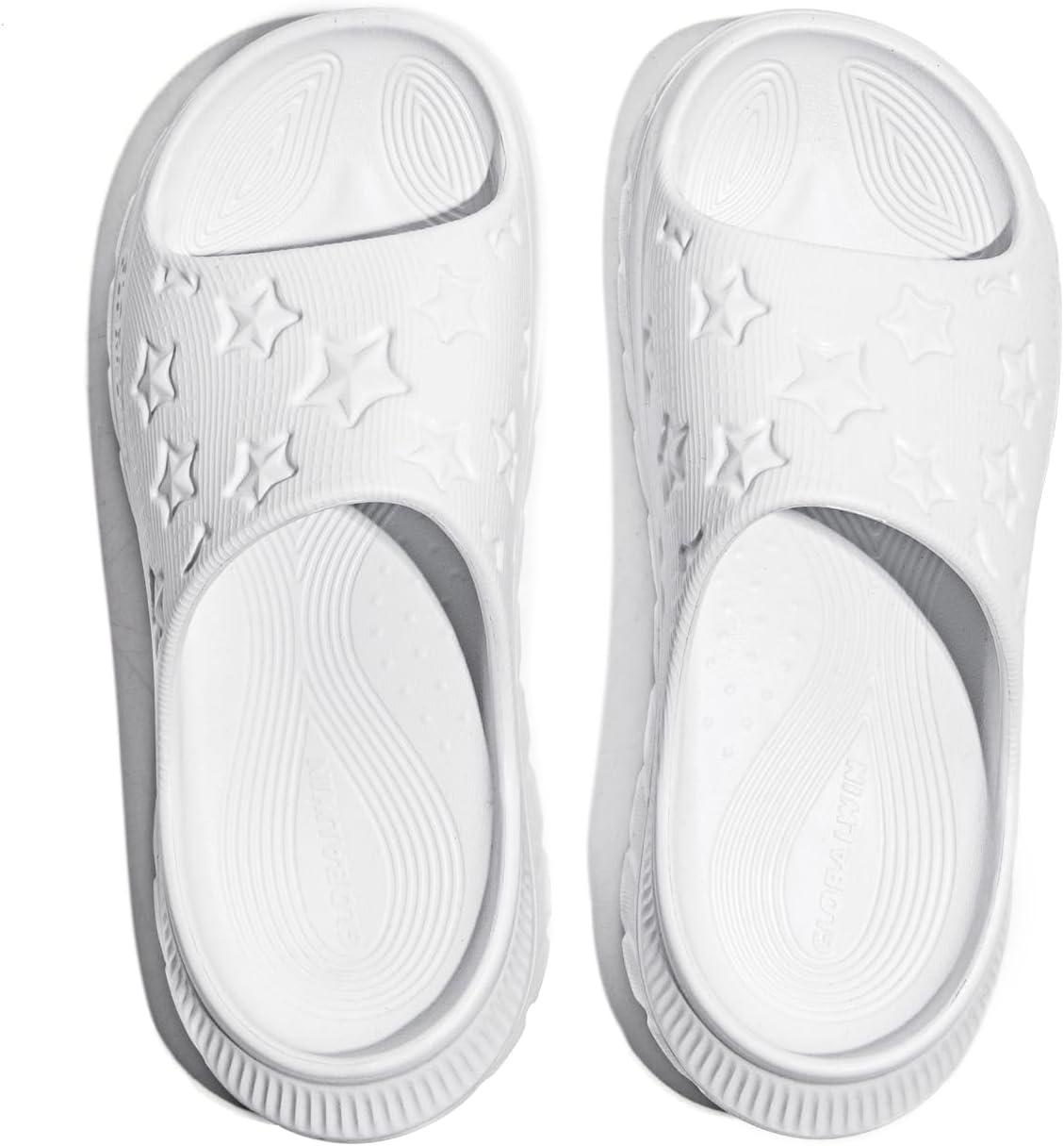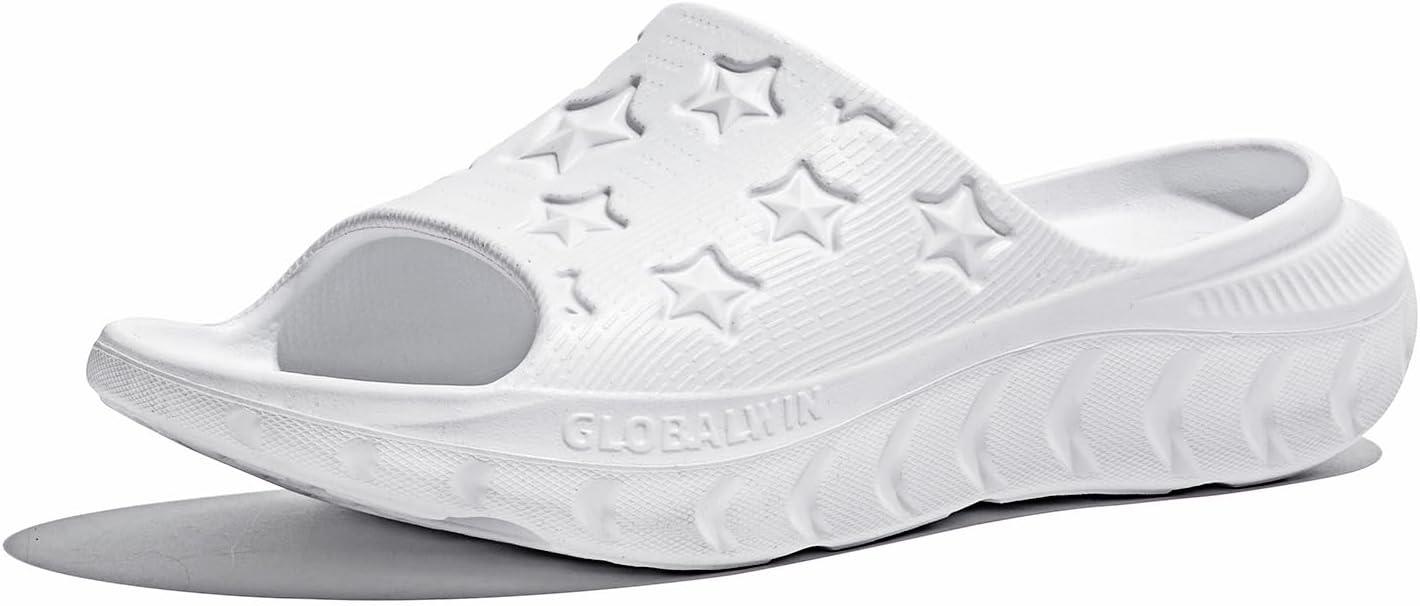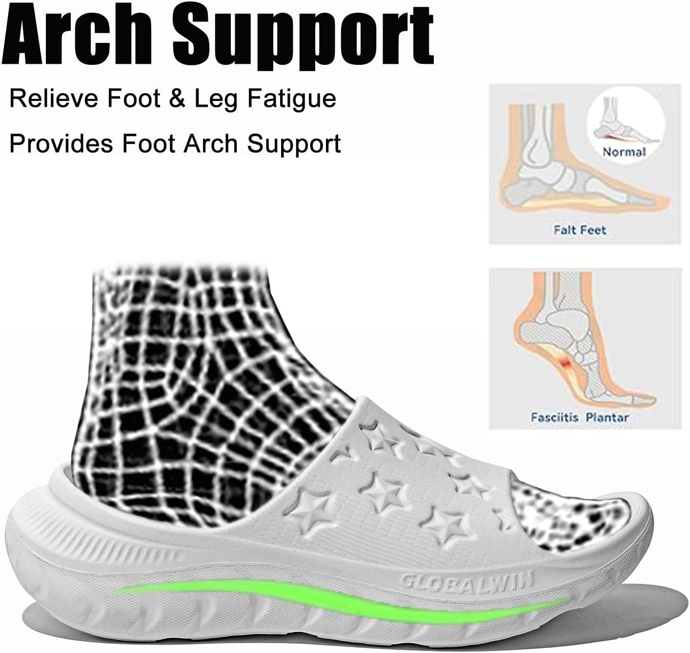 GLOBALWIN Sports Recovery Slides for Women Ava Sports Sandals With Comfortable Arch Support Indoor Outdoor Cloud Slippers Reduce Stress on Feet Lightweight Pillow Slides(Ss231 White)