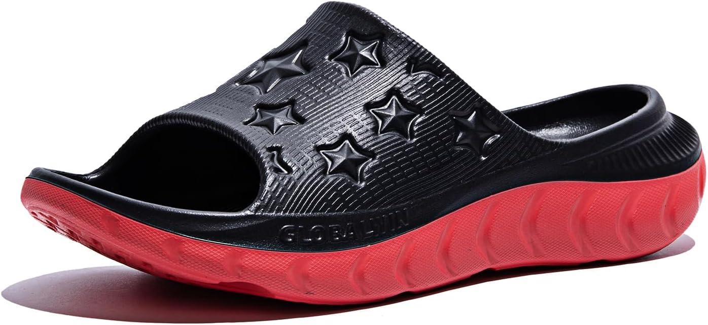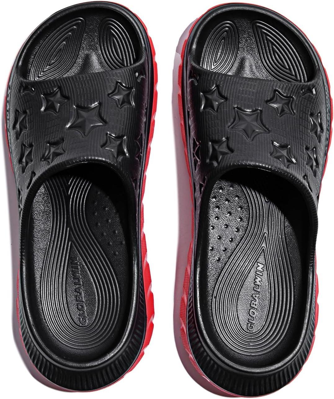 GLOBALWIN Sports Recovery Slides for Women Ava Sports Sandals With Comfortable Arch Support Indoor Outdoor Cloud Slippers Reduce Stress on Feet Lightweight Pillow Slides(Ss232 Black Red)