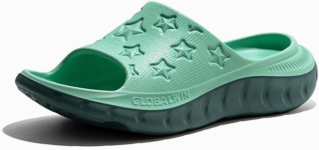 GLOBALWIN Sports Recovery Slides for Women Ava Sports Sandals With Comfortable Arch Support Indoor Outdoor Cloud Slippers Reduce Stress on Feet Lightweight Pillow Slides(Ss232 Evening Primrose Blue)