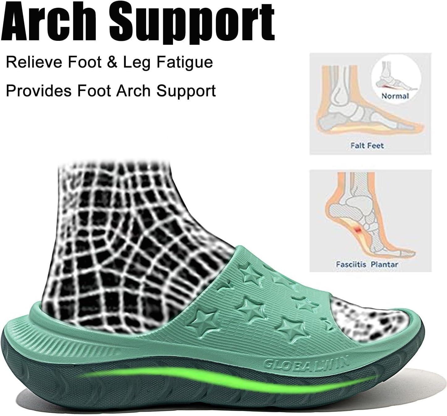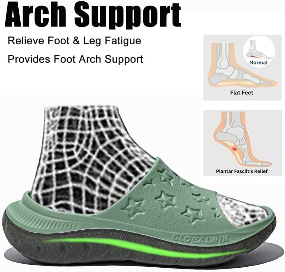 GLOBALWIN Sports Recovery Slides for Women Ava Sports Sandals With Comfortable Arch Support Indoor Outdoor Cloud Slippers Reduce Stress on Feet Lightweight Pillow Slides(Ss232 Olive Green)