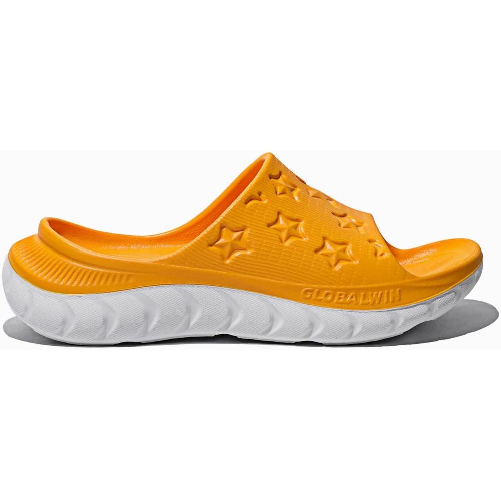 GLOBALWIN Sports Recovery Slides for Women Ava Sports Sandals With Comfortable Arch Support Indoor Outdoor Cloud Slippers Reduce Stress on Feet Lightweight Pillow Slides(Ss232 Yellow White)