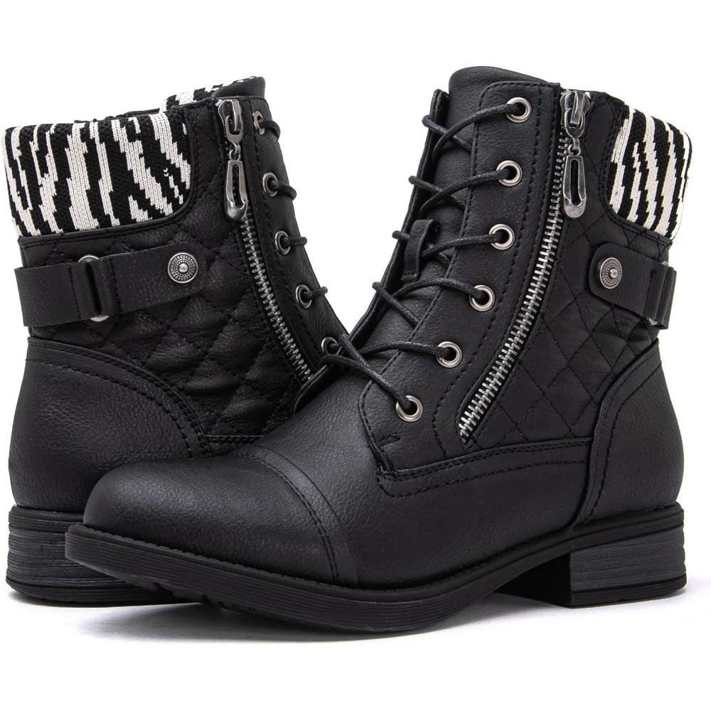 GLOBALWIN Women’s Ankle Booties Fashion Combat Boots Fall Boots For Women Comfortable Low Heel(2121black)