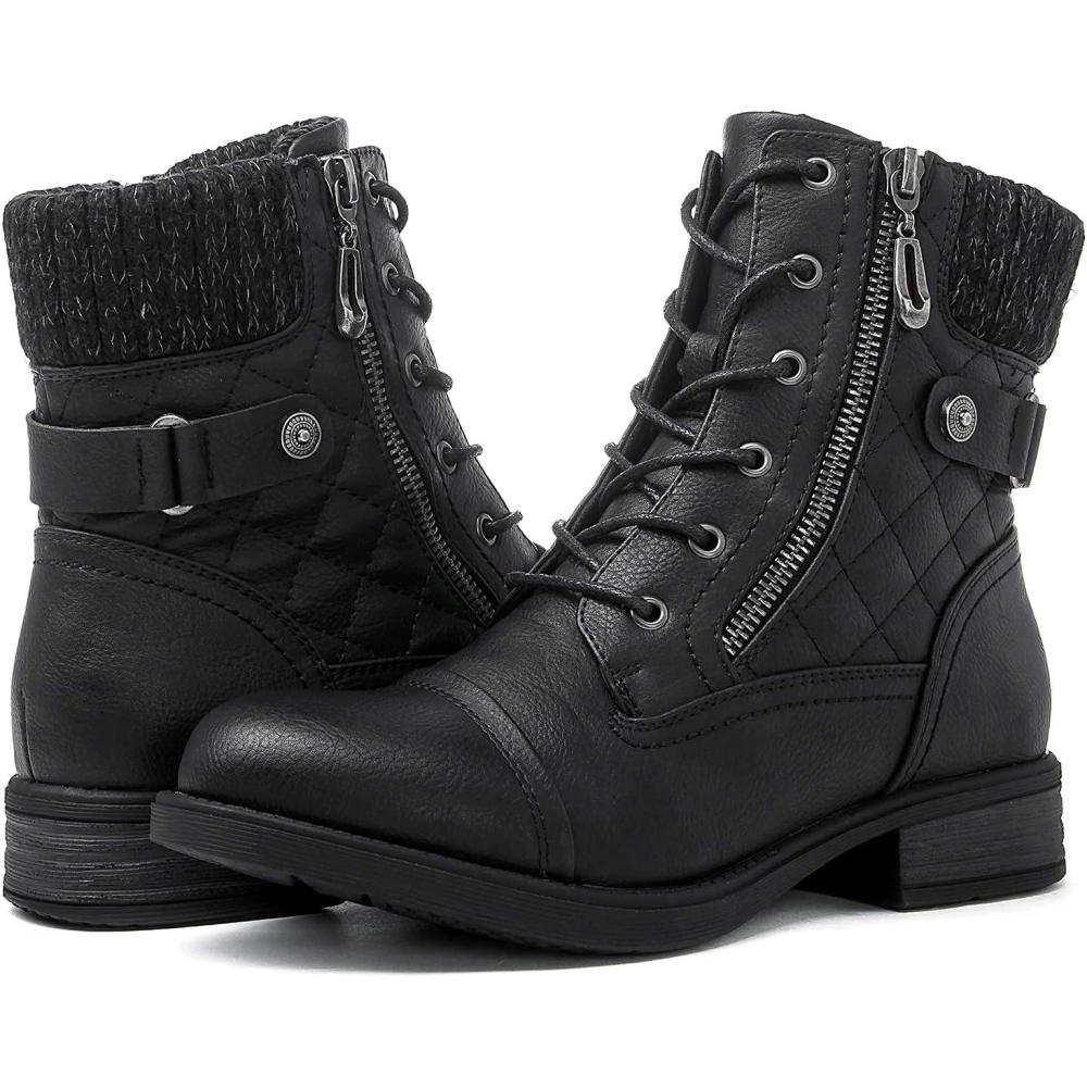 GLOBALWIN Women’s Ankle Booties Fashion Combat Boots Fall Boots For Women Comfortable Low Heel(2121black)