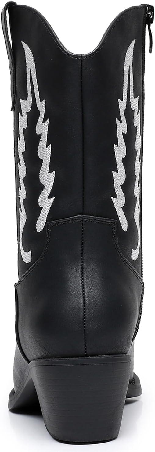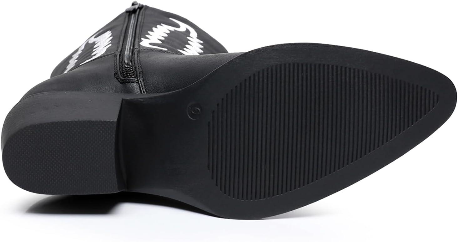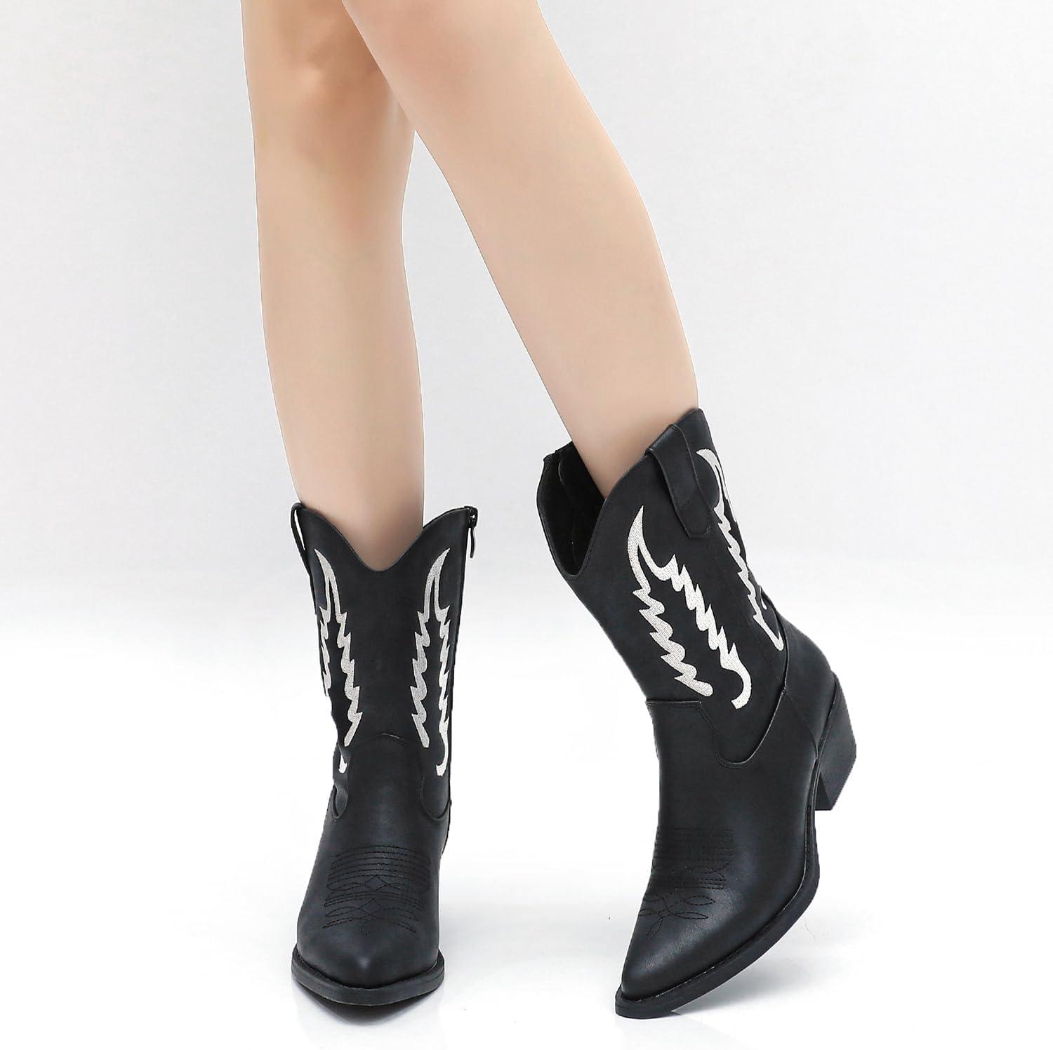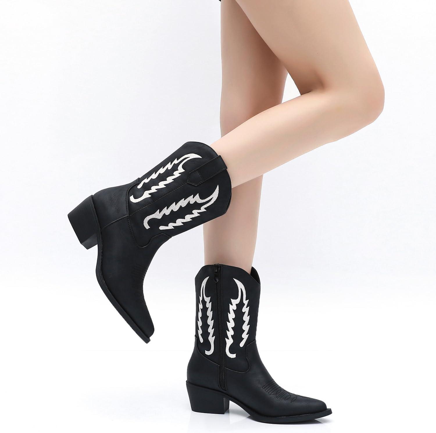 GLOBALWIN Women’s Cowgirl Boots Mid Calf Western Cowboy Boots For Women Comfortable Low Heel With Zipper(23yy09 Black3)
