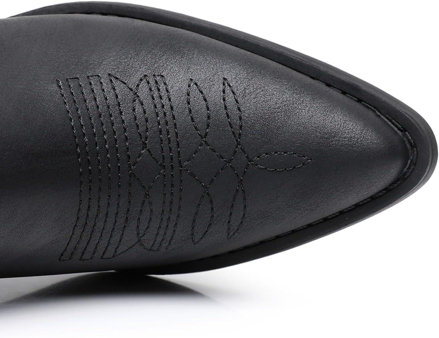 GLOBALWIN Women’s Cowgirl Boots Mid Calf Western Cowboy Boots For Women Comfortable Low Heel With Zipper(23yy09 Black1)