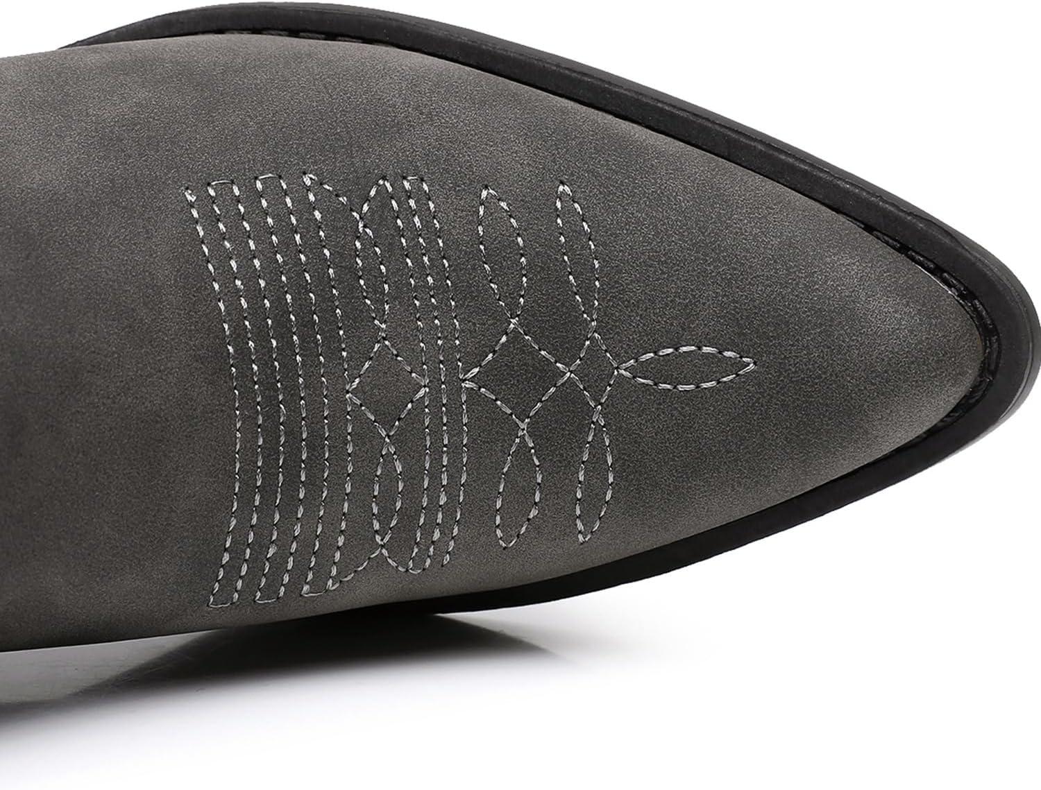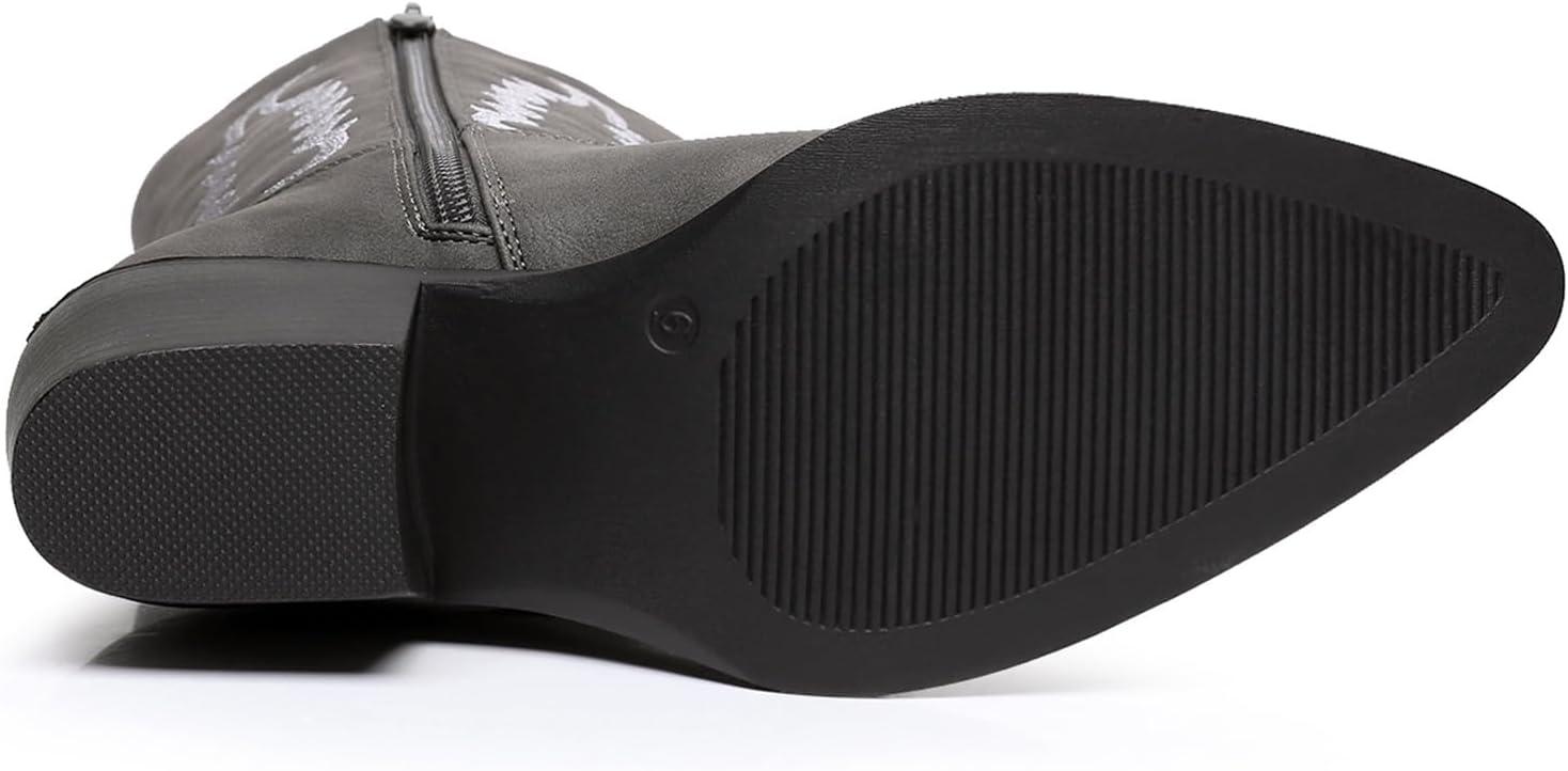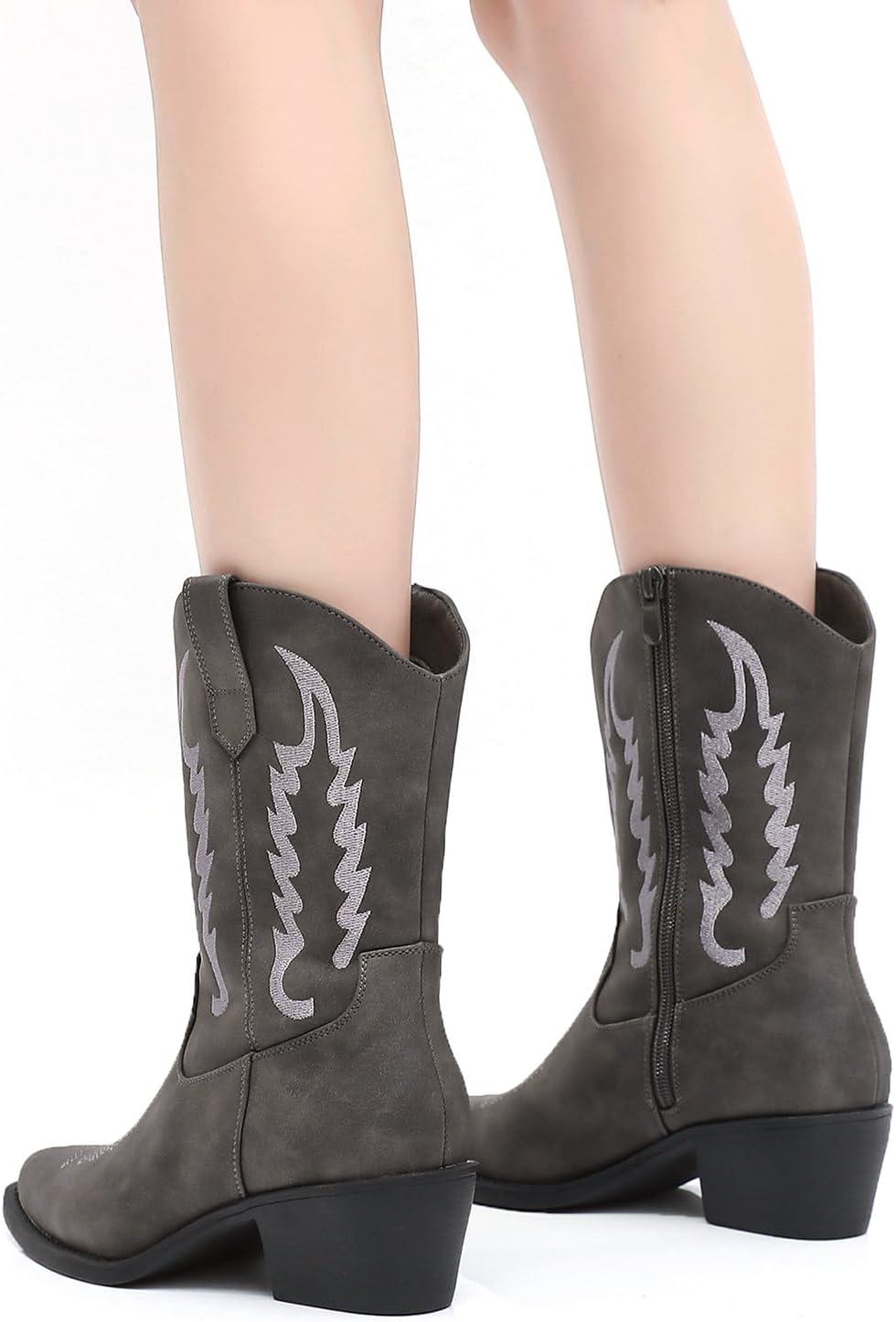 GLOBALWIN Women’s Cowgirl Boots Mid Calf Western Cowboy Boots For Women Comfortable Low Heel With Zipper(23yy09 Grey)