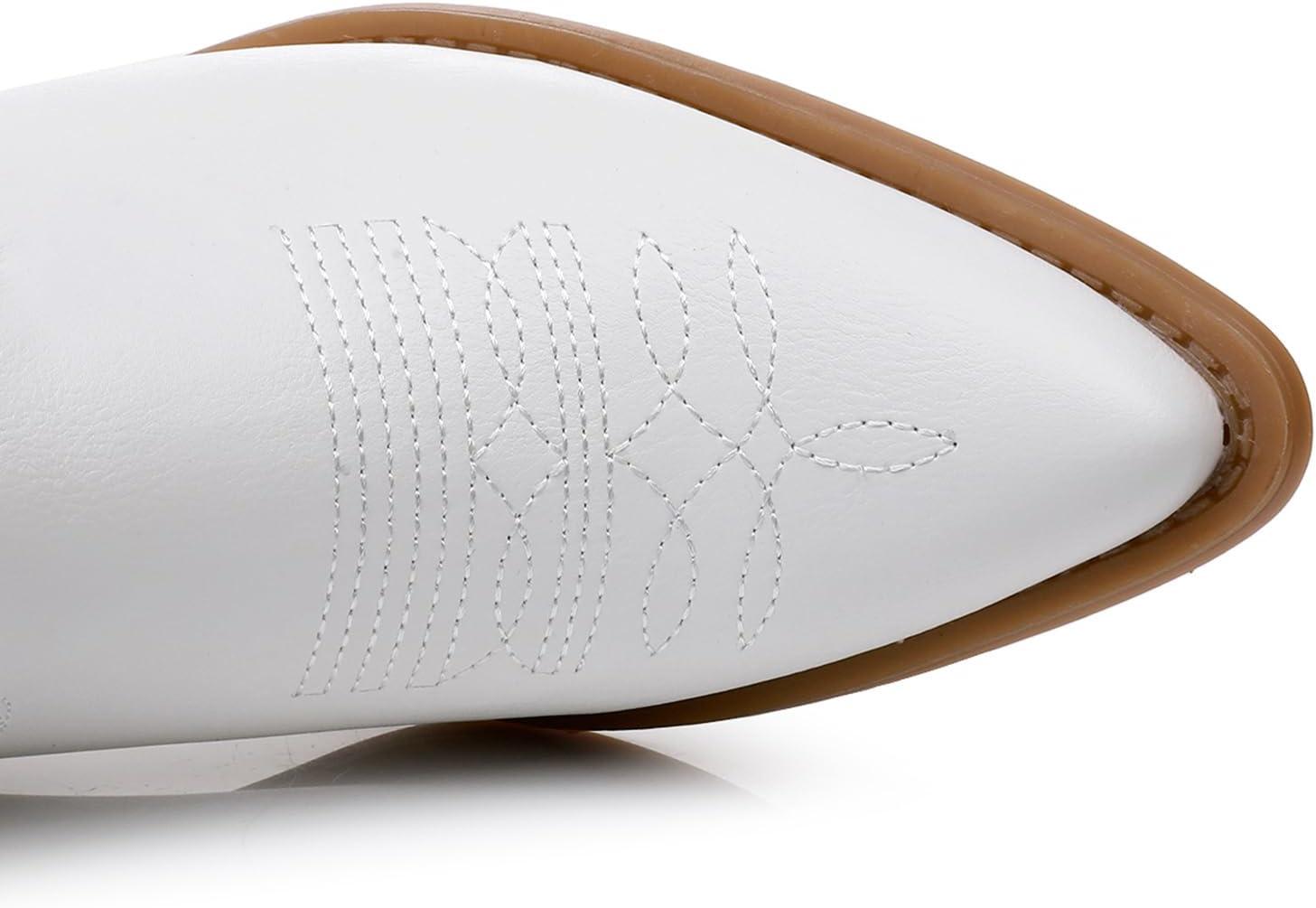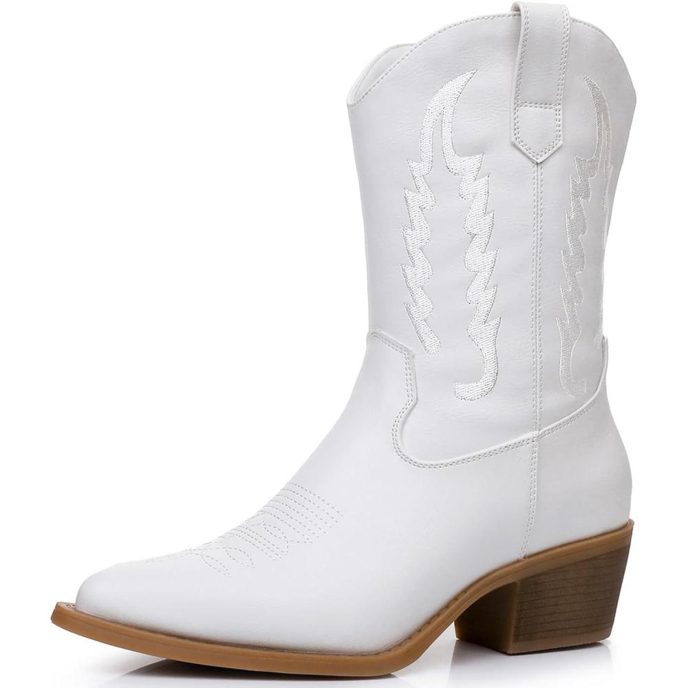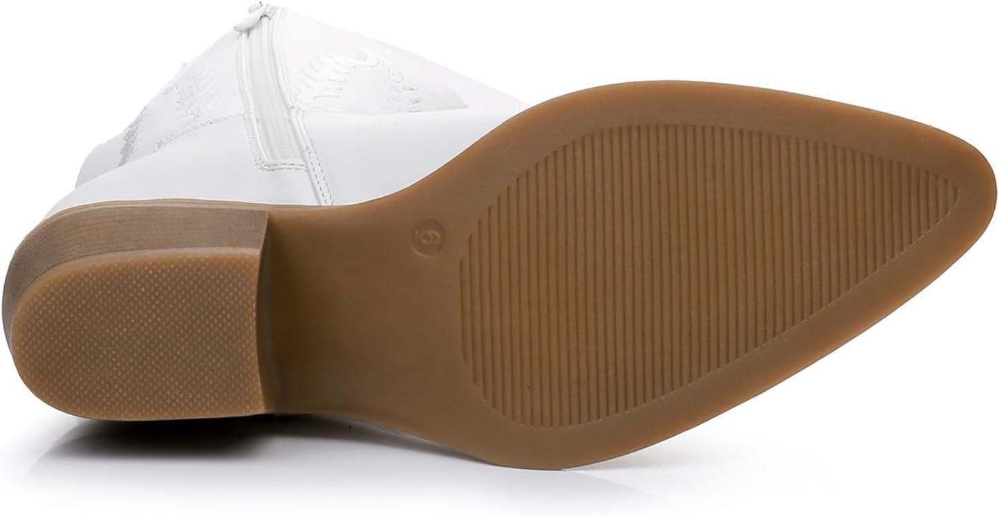 GLOBALWIN Women’s Cowgirl Boots Mid Calf Western Cowboy Boots For Women Comfortable Low Heel With Zipper(23yy09 White)