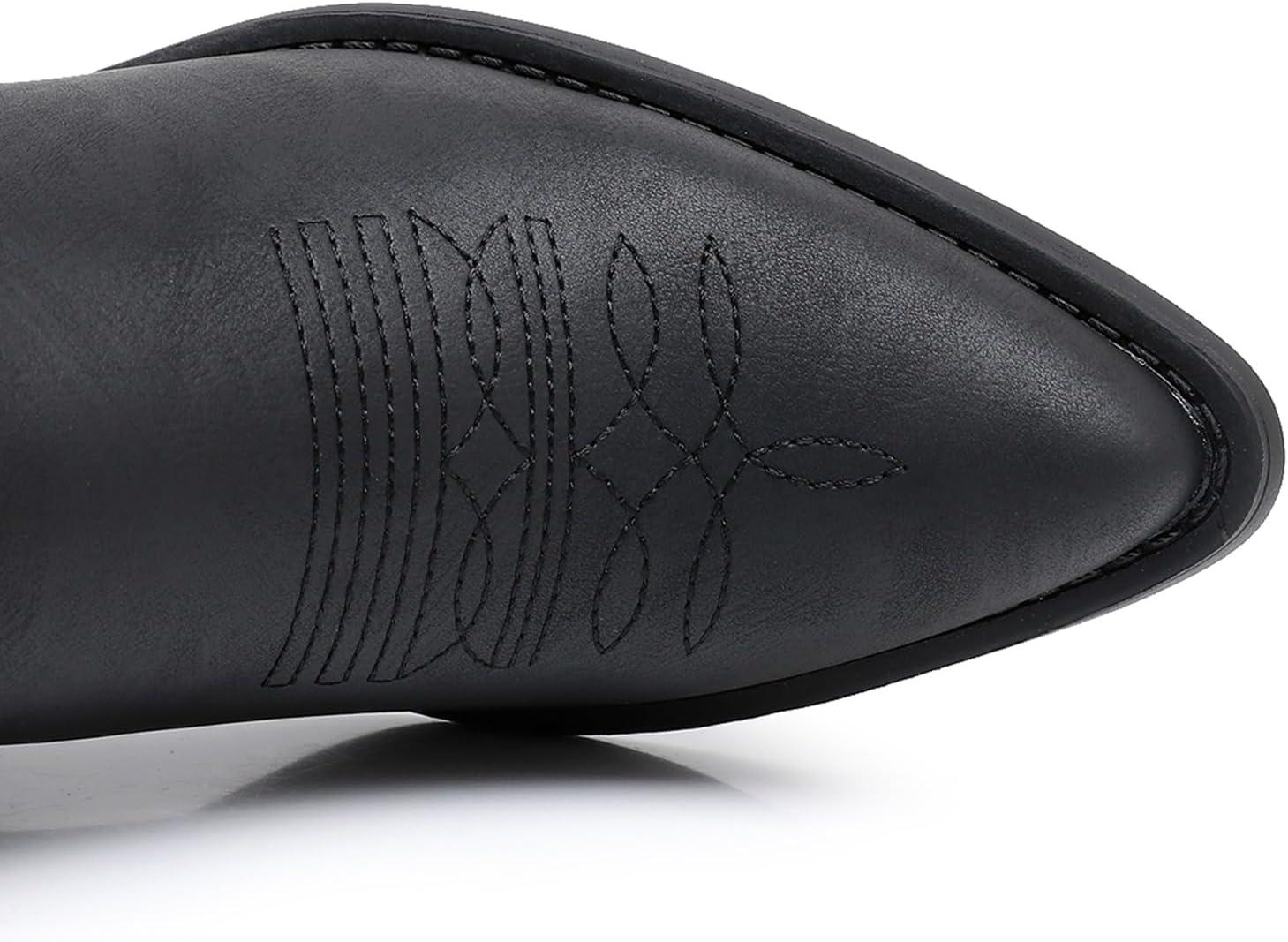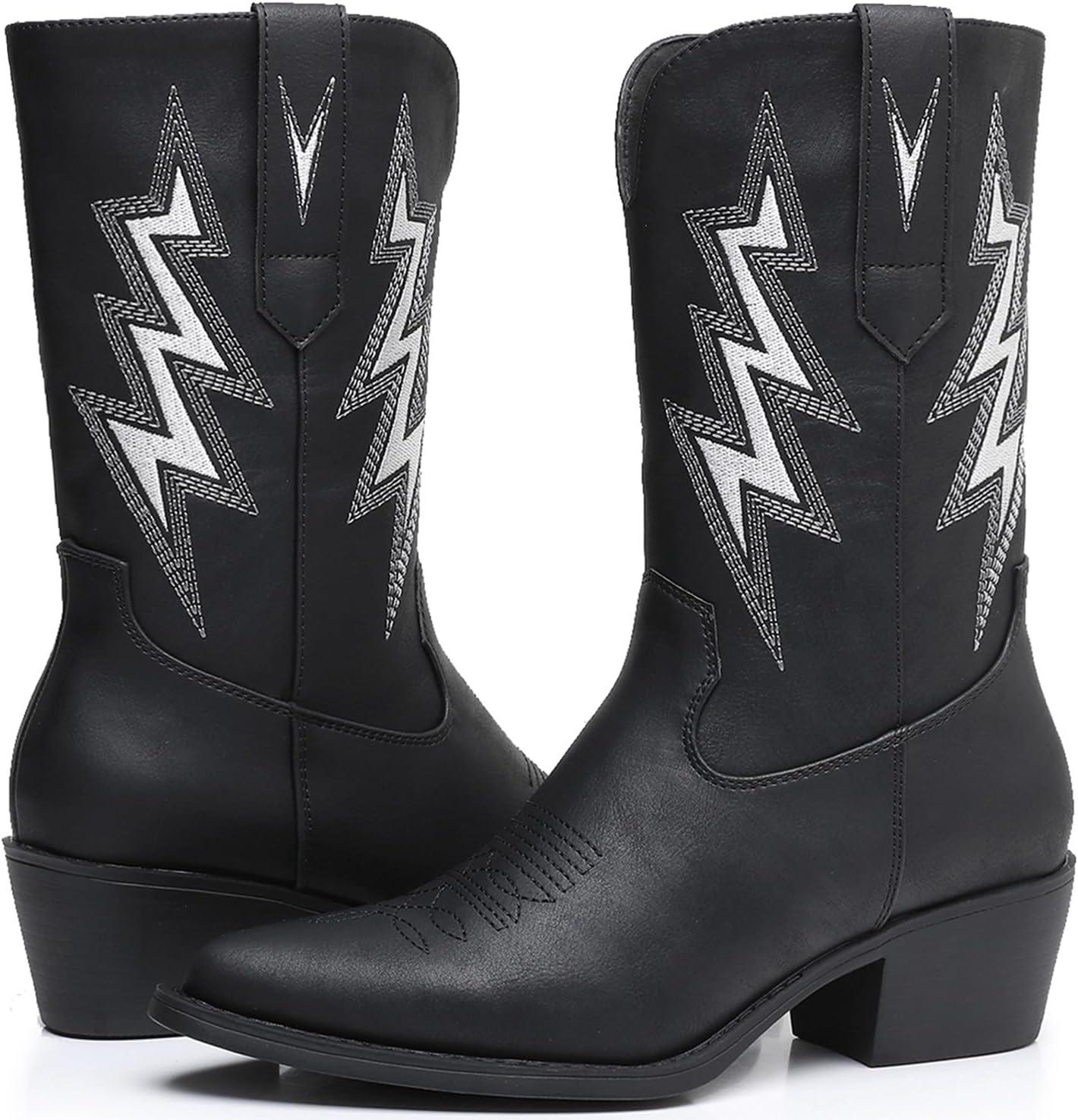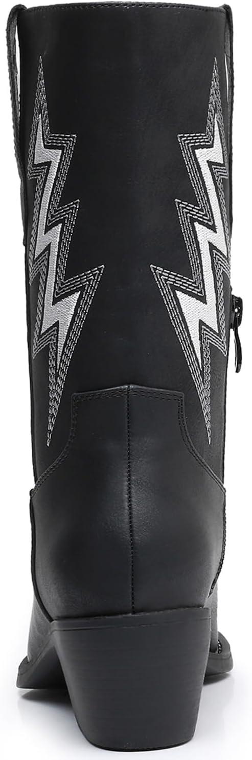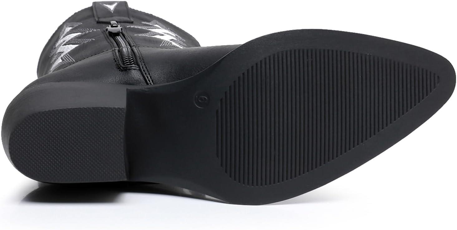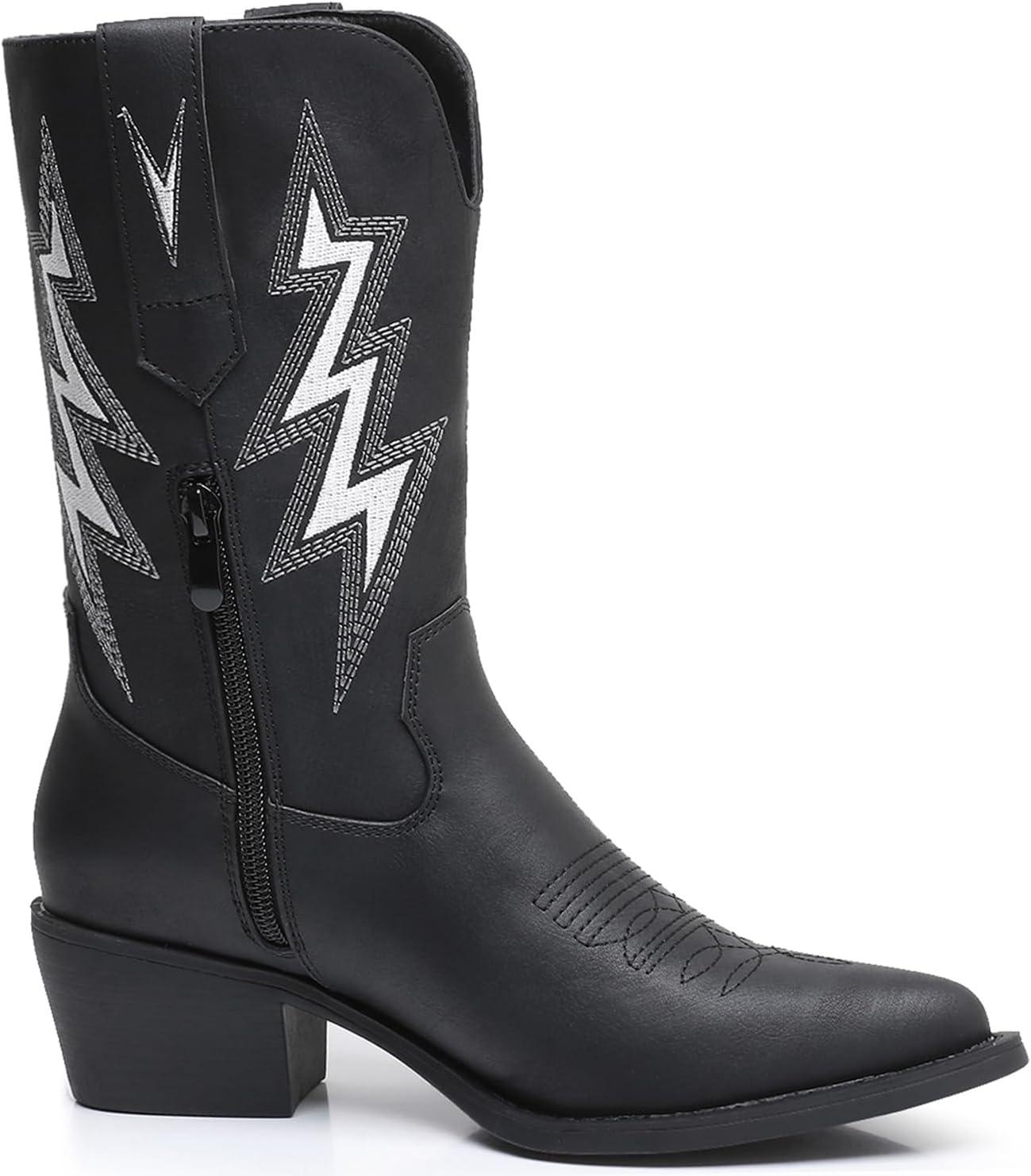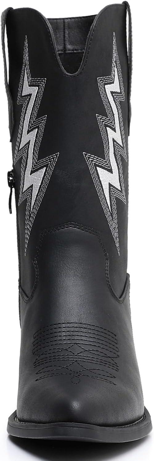 GLOBALWIN Women’s Cowgirl Boots Mid Calf Western Cowboy Boots For Women Comfortable Low Heel With Zipper(23yy10 Black)