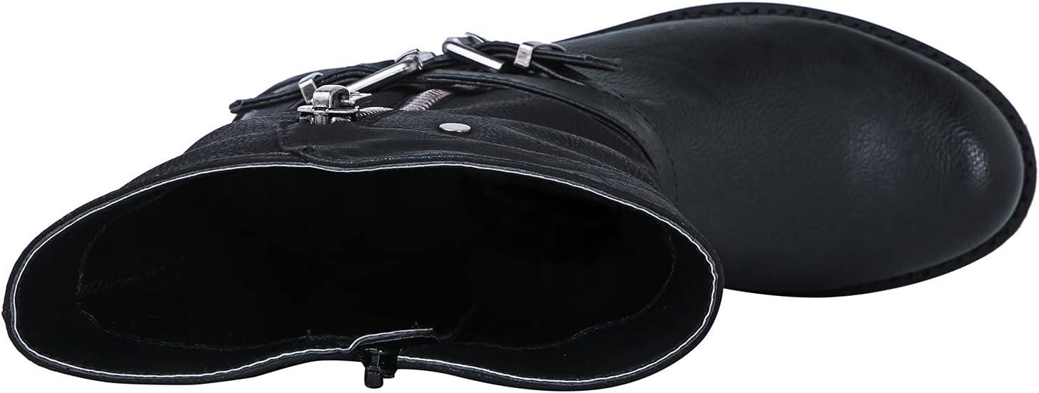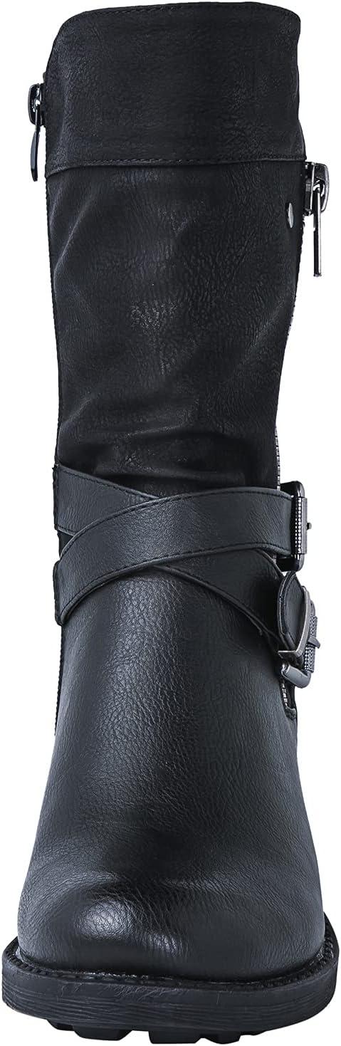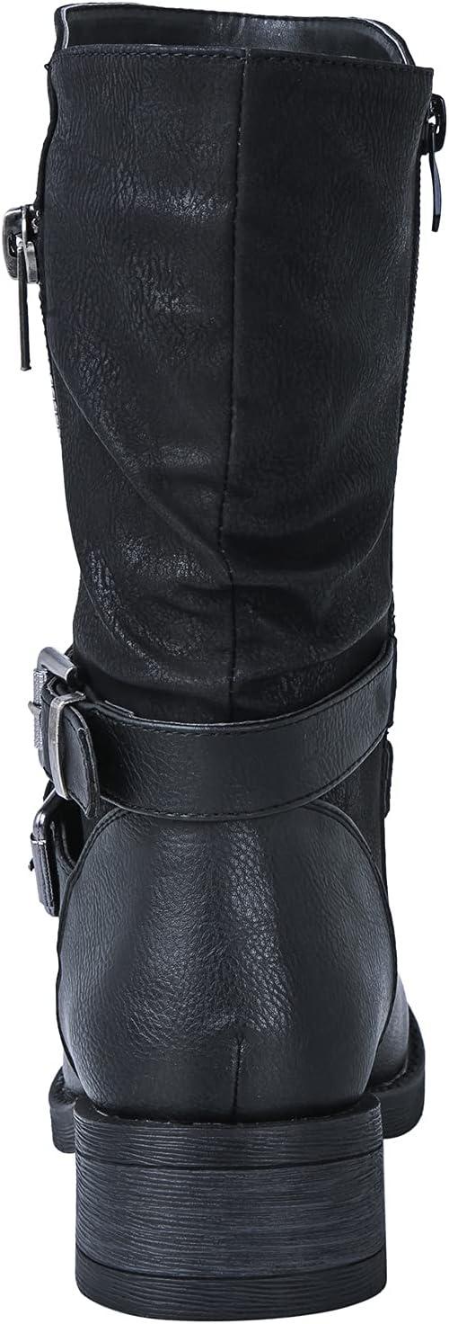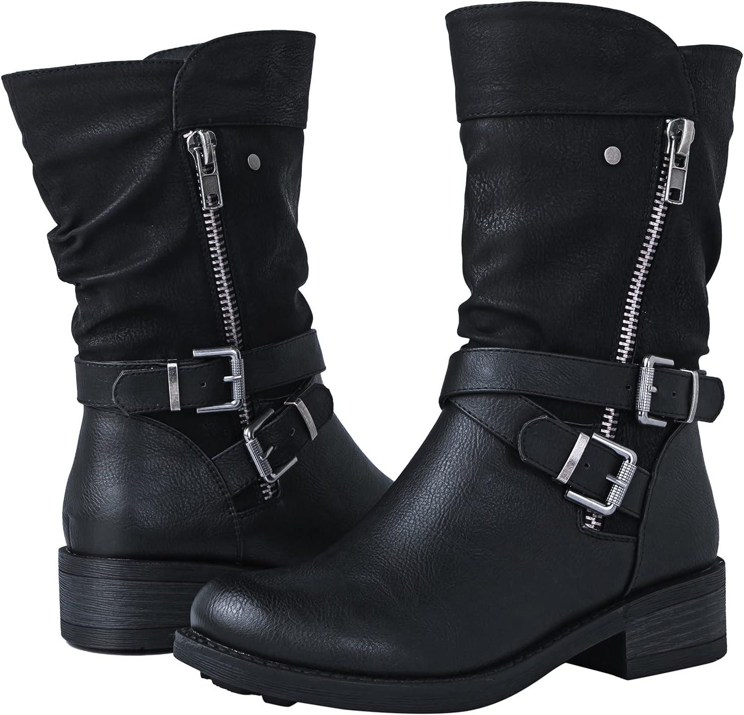 GLOBALWIN Women’s Fall Fashion Biker Boots Mid Calf Boots For Women Low Heel(18yy05 Black)