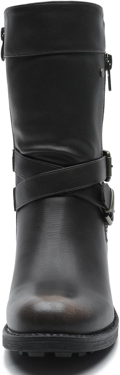 GLOBALWIN Women’s Fall Fashion Biker Boots Mid Calf Boots For Women Low Heel(18yy05 Black2)