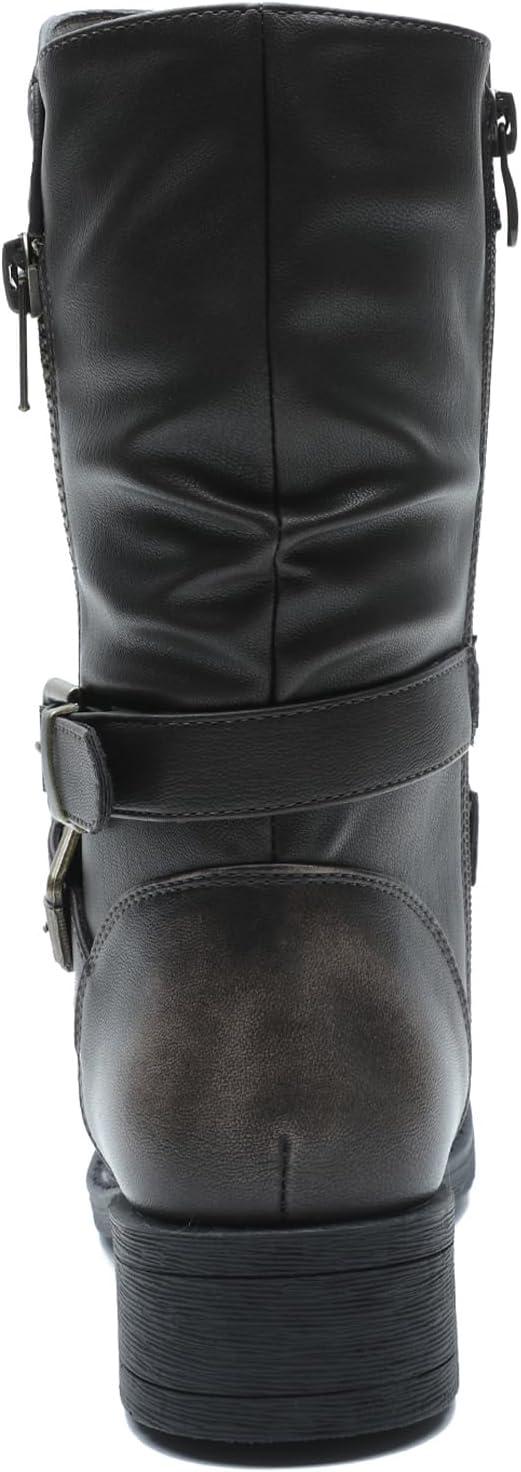 GLOBALWIN Women’s Fall Fashion Biker Boots Mid Calf Boots For Women Low Heel(18yy05 Distressed Silver)