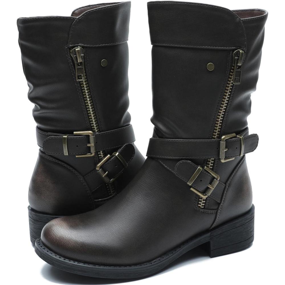 GLOBALWIN Women’s Fall Fashion Biker Boots Mid Calf Boots For Women Low Heel(18yy05 Distressed Brown)