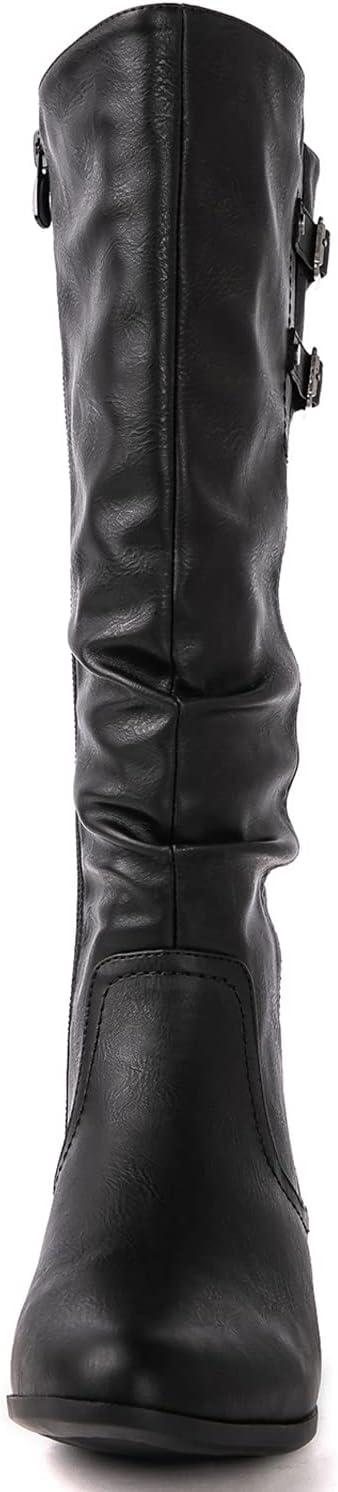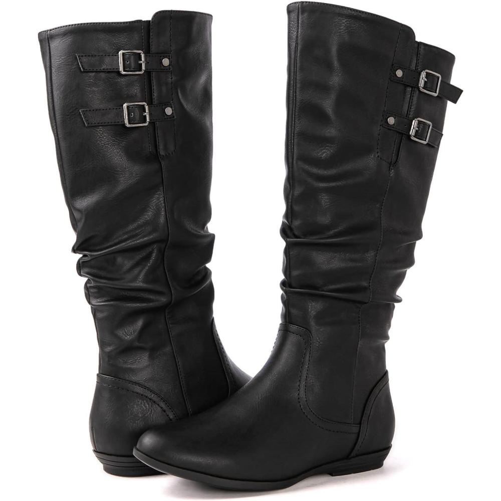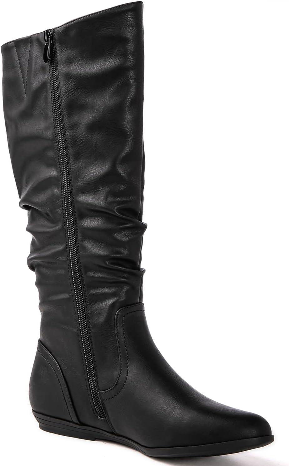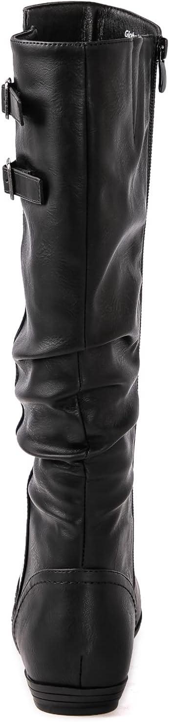 GLOBALWIN Women’s Knee-High Fashion Boots Wide Calf Flat Dressy Fall Winter Fashion Boots For Women(22yy01 Black)