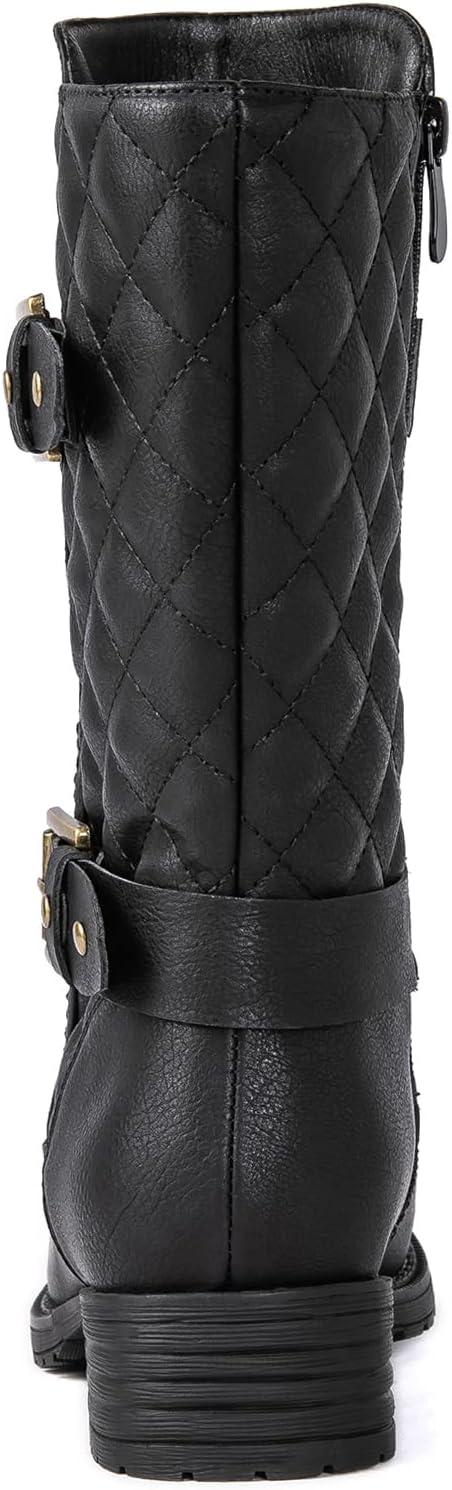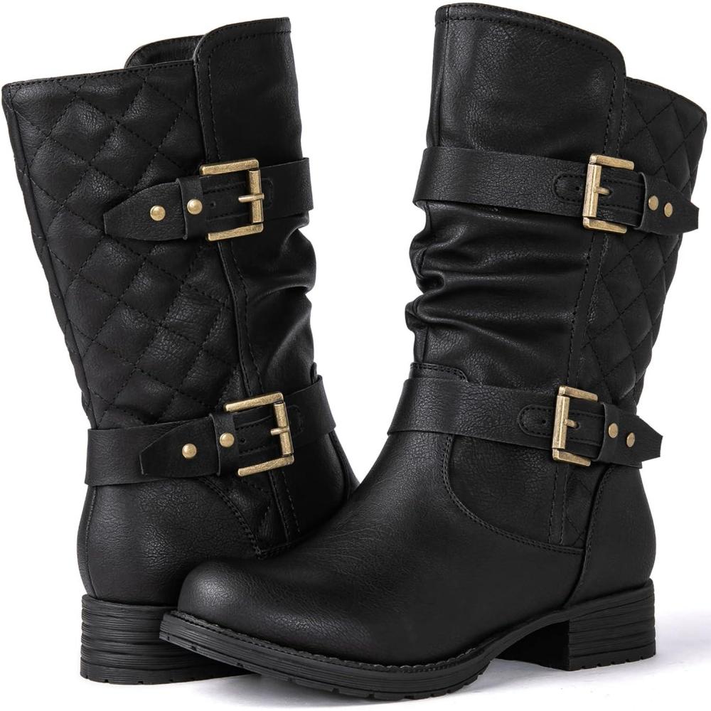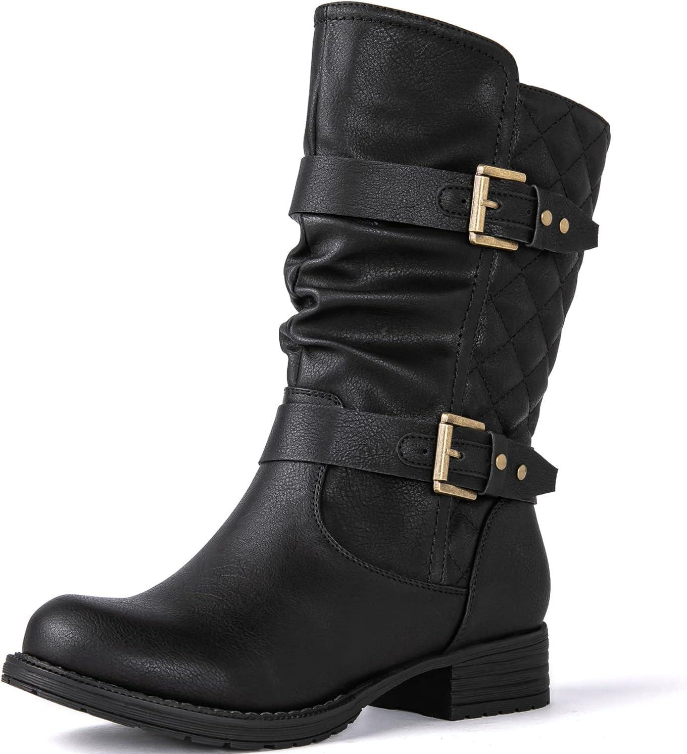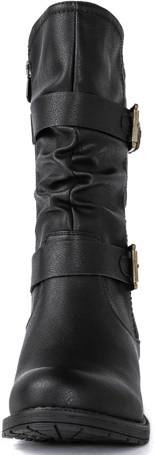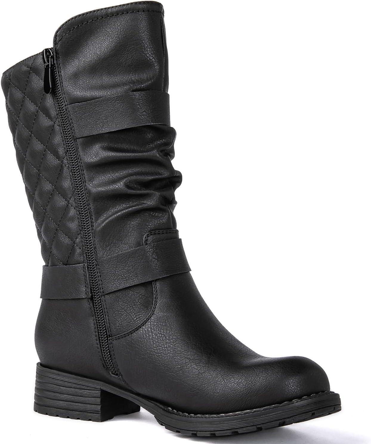 GLOBALWIN Women’s Mid Calf Comfortable Fashion Dress Boots For Women Low Heel With Zipper(Black)