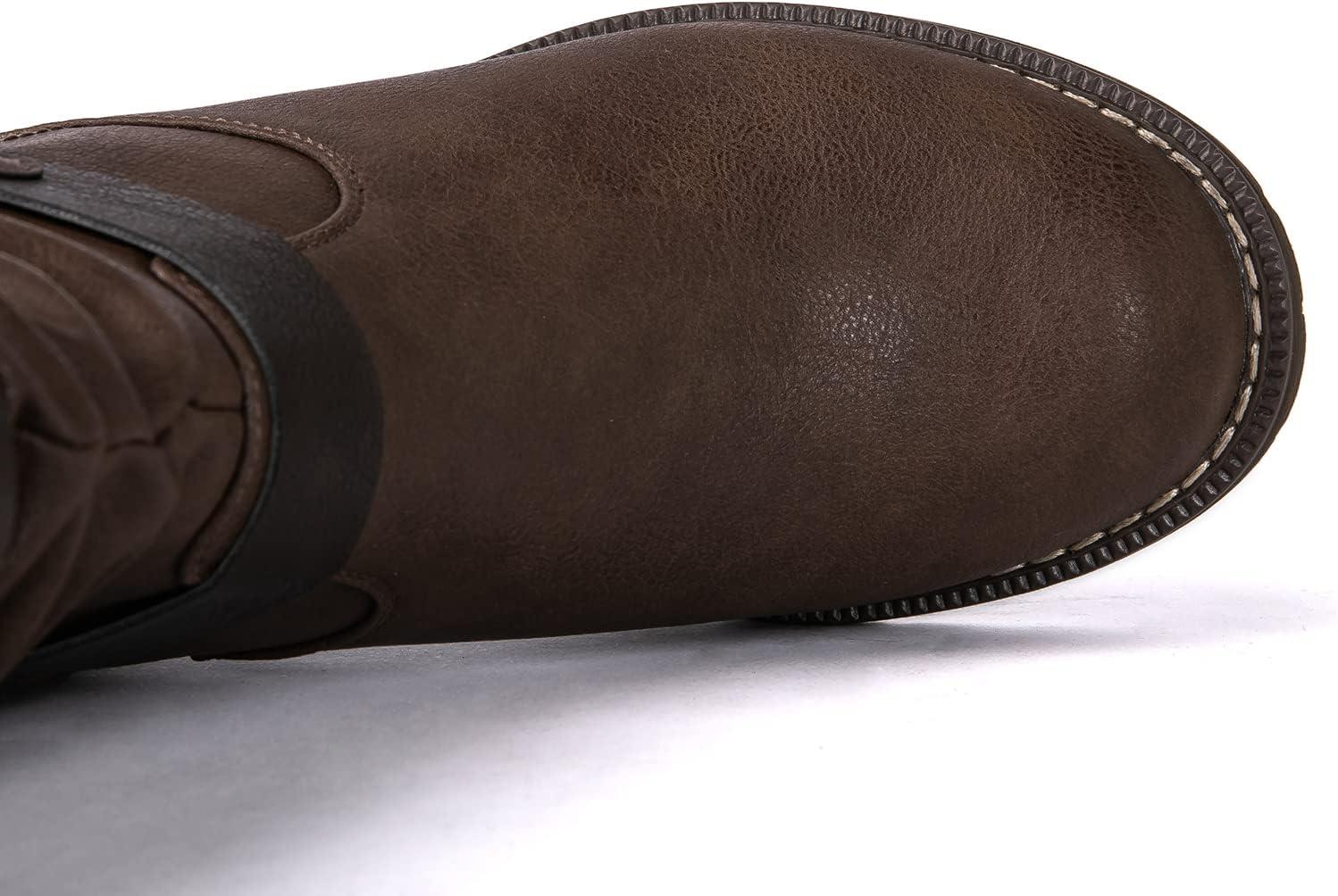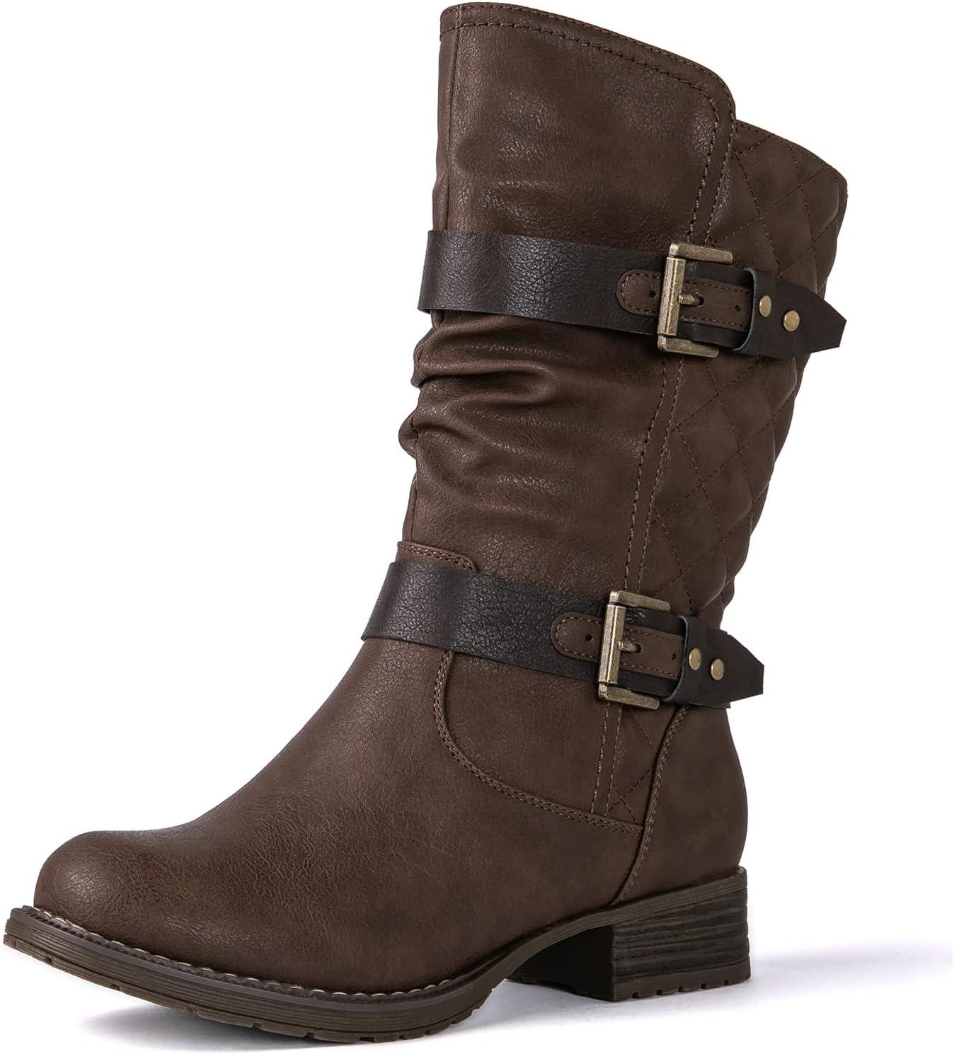 GLOBALWIN Women’s Mid Calf Comfortable Fashion Dress Boots For Women Low Heel With Zipper(17yy10 Black/Brown)