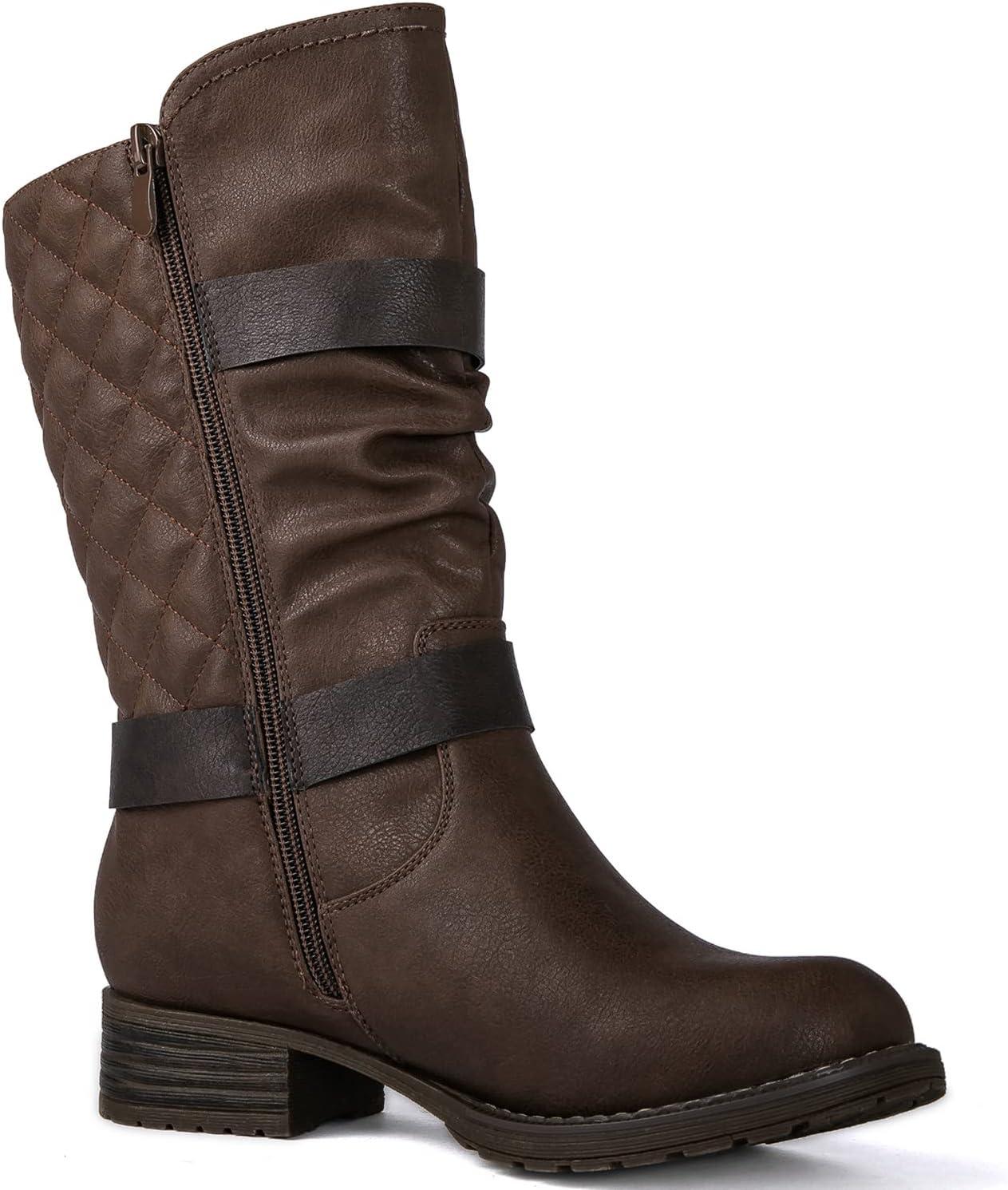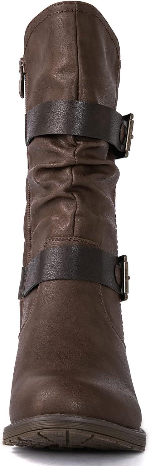 GLOBALWIN Women’s Mid Calf Comfortable Fashion Dress Boots For Women Low Heel With Zipper(17yy10 Brown2)