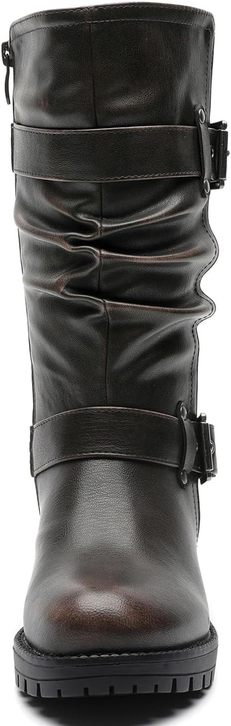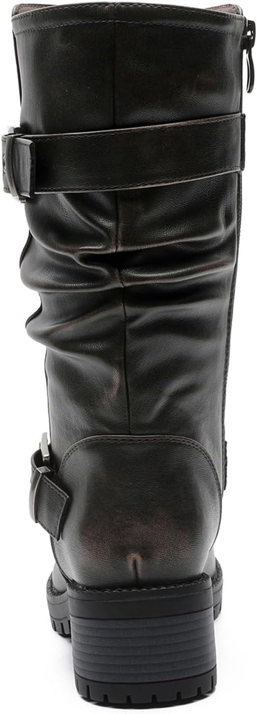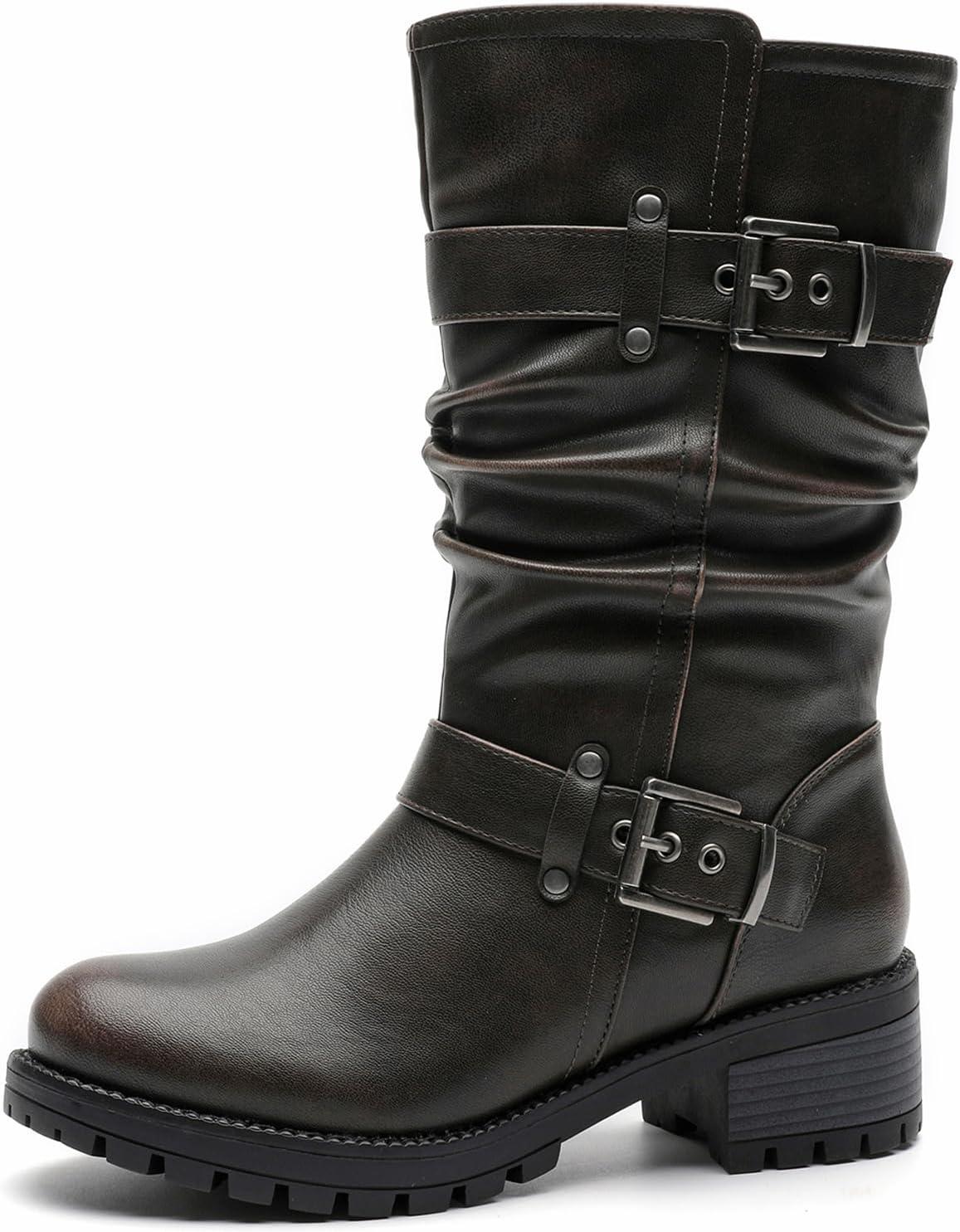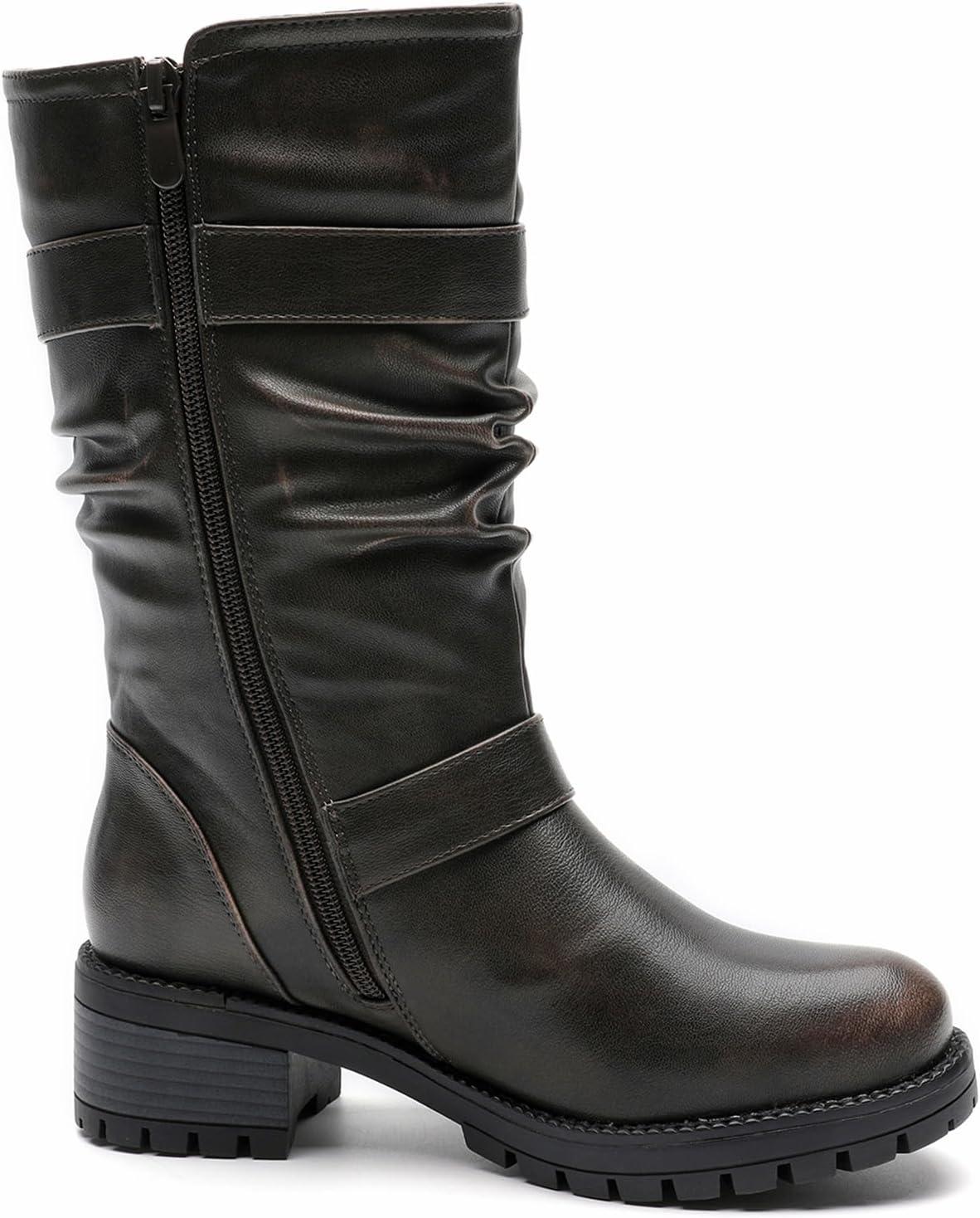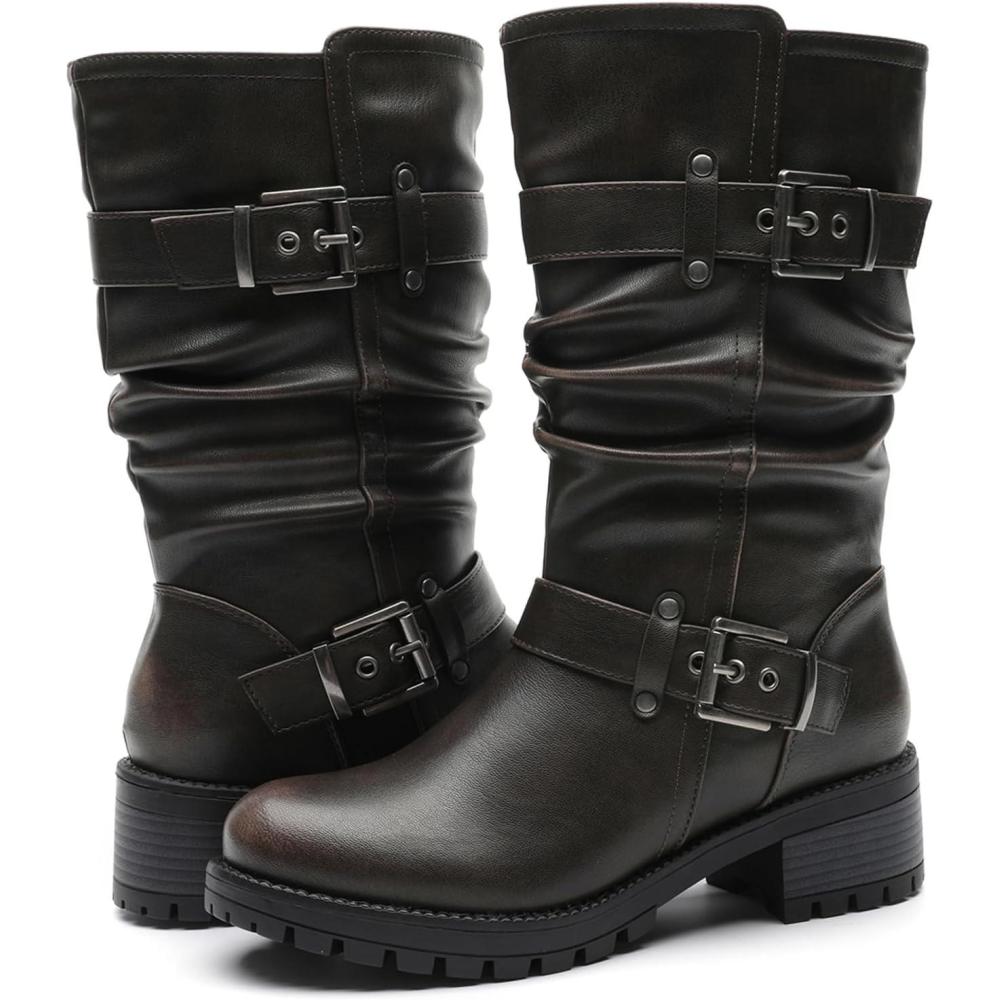 Bring Bold Attitude To Your Fall And Winter Wardrobe With Globalwin’s Women’s Mid Calf Boots, Modeled After Classic Biker Boots. These Moto-Inspired Fashion Boots Feature Rugged Buckle Straps, A Slouched Shaft For That Effortlessly Edgy Look. The Chunky Block Heel And Grippy Treaded Sole Make Them As Functional As They Are Stylish. Whether You're Pairing Them With Denim Or Layering Up For Colder Days, These Boots Deliver The Perfect Mix Of Comfort, Durability, And Street-Smart Edge.