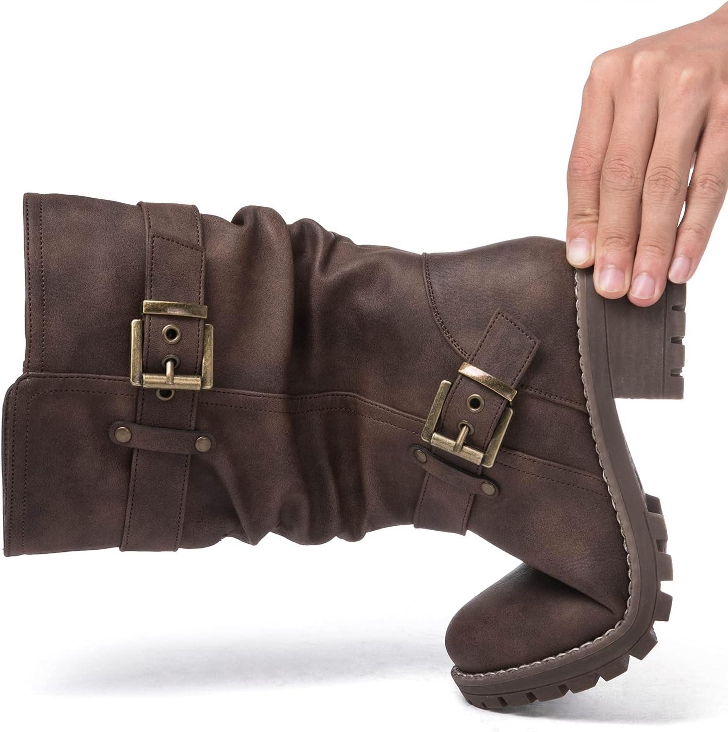Bring Bold Attitude To Your Fall And Winter Wardrobe With Globalwin’s Women’s Mid Calf Boots, Modeled After Classic Biker Boots. These Moto-Inspired Fashion Boots Feature Rugged Buckle Straps, A Slouched Shaft For That Effortlessly Edgy Look. The Chunky Block Heel And Grippy Treaded Sole Make Them As Functional As They Are Stylish. Whether You're Pairing Them With Denim Or Layering Up For Colder Days, These Boots Deliver The Perfect Mix Of Comfort, Durability, And Street-Smart Edge.