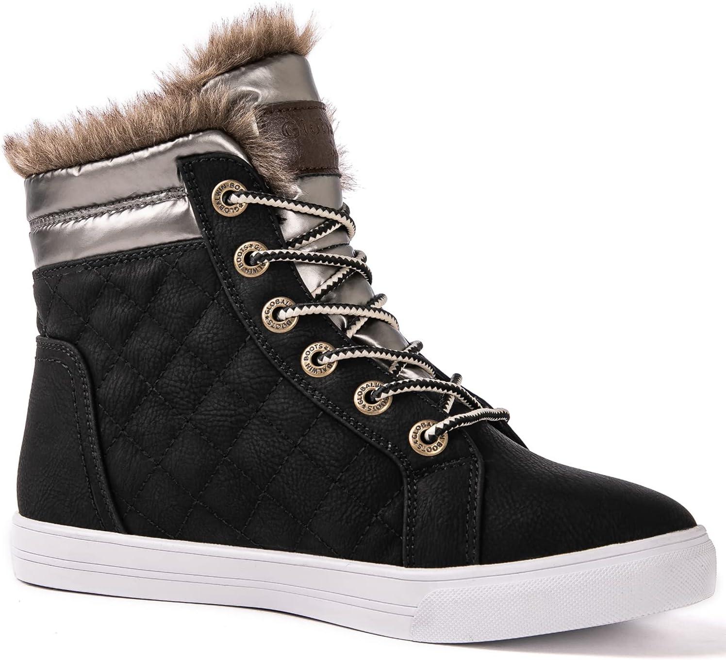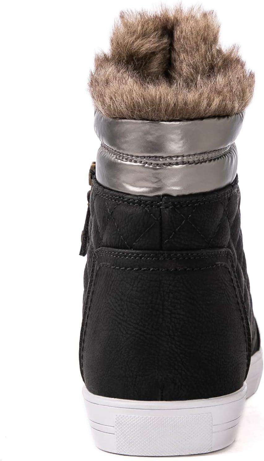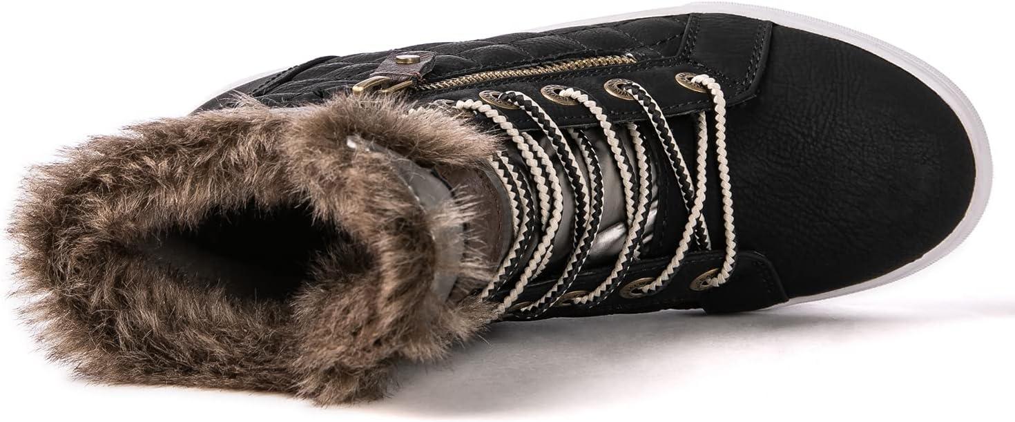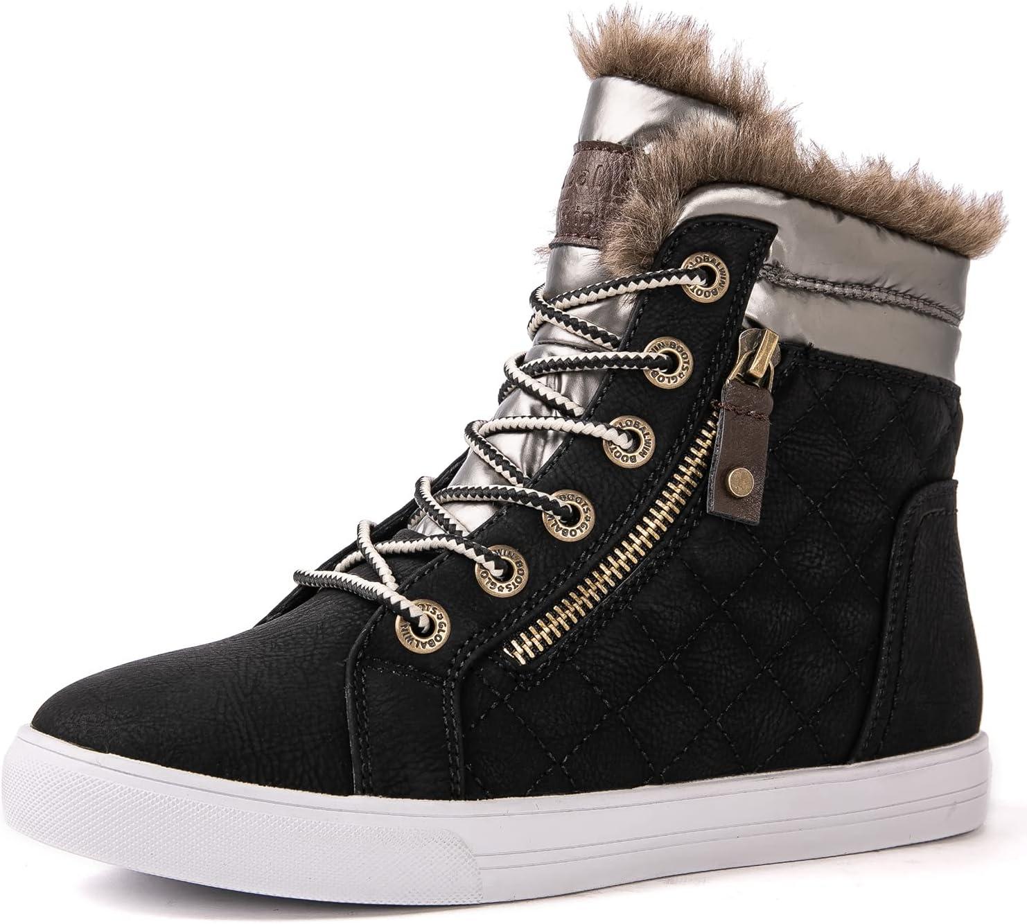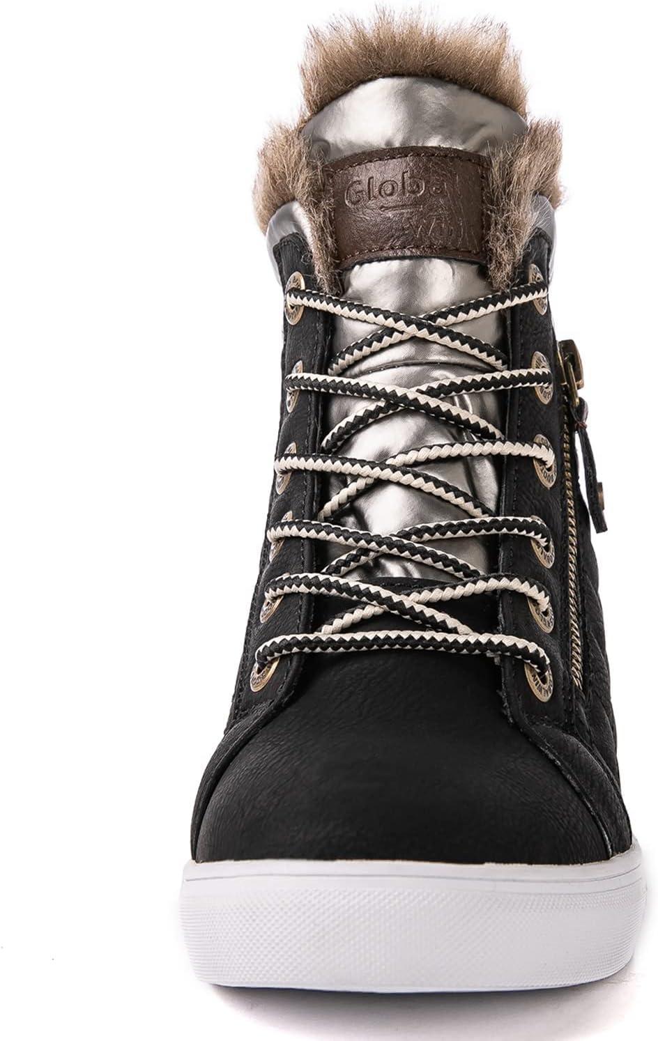 GLOBALWIN Women’s Platform Wedge Sneakers Outdoor Anti-Slip Winter Snow Hiking Furry Ankle Boots for Women(21yy02 Black1)