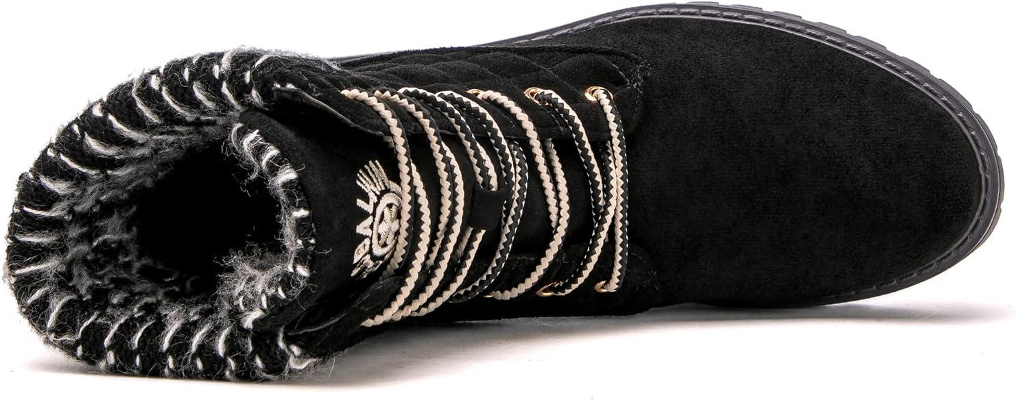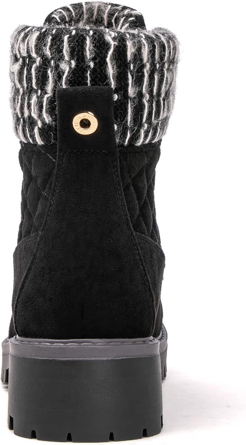 GLOBALWIN Women’s Quilted Ankle Boots Fashion Combat Boots Lace Up Combat Boots Low Heel Warm Fur Ankle Booties For Women(1915 Black3)
