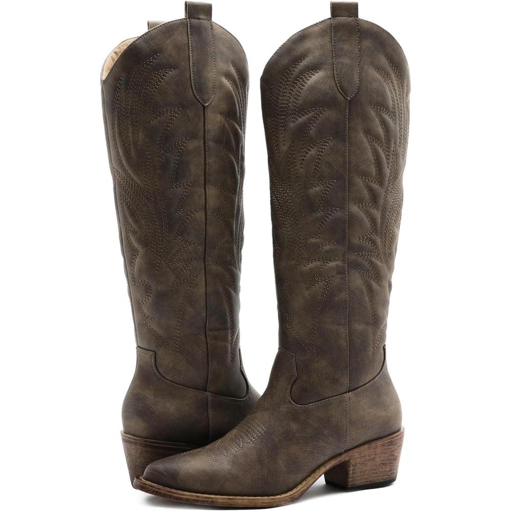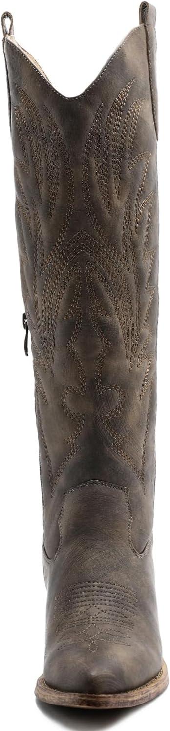 GLOBALWIN Women’s The Western Cowboy Cowgirl Embroidered Knee High Boots(23yy12-12 Brown)