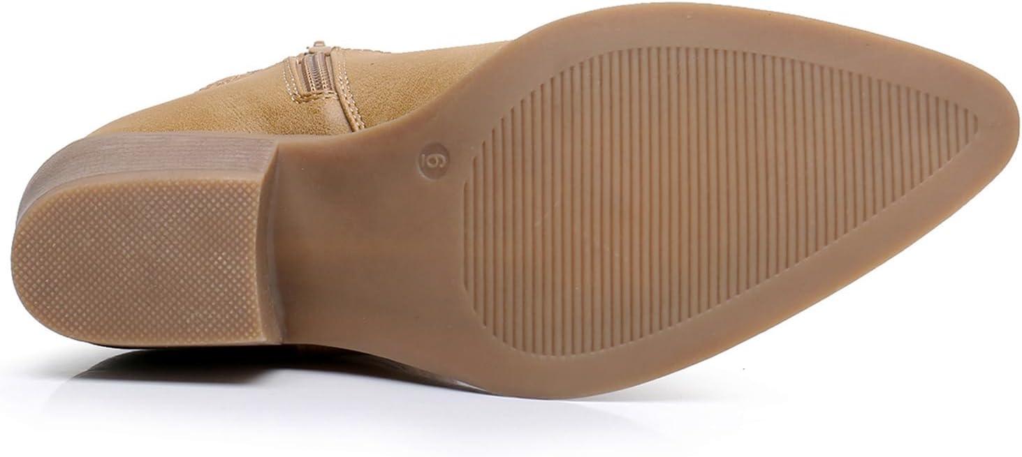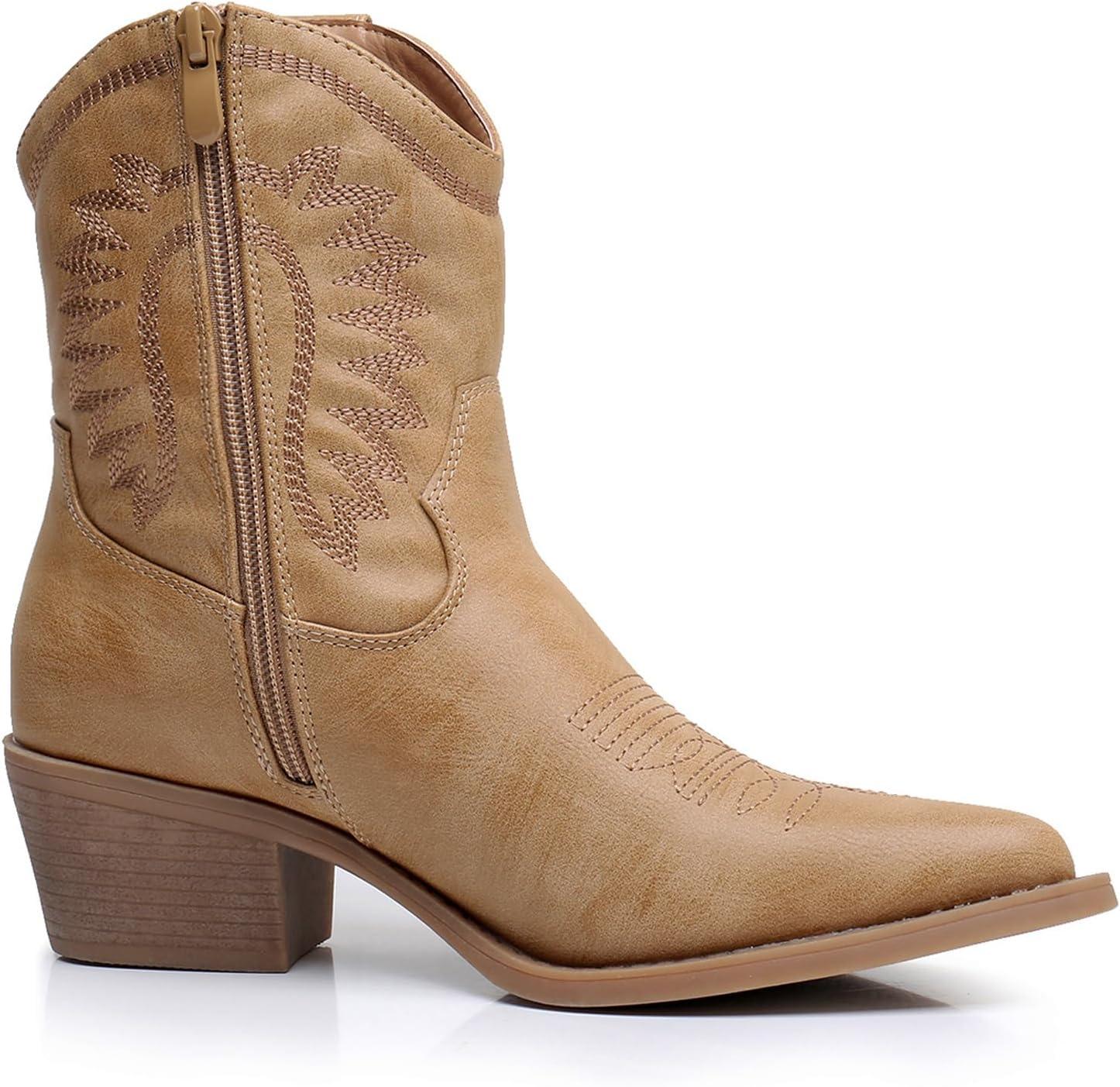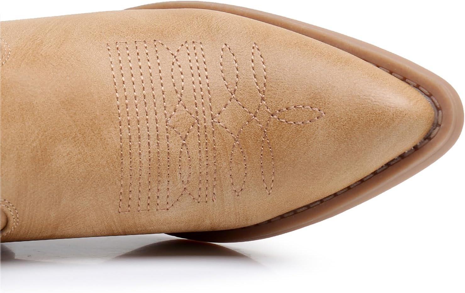 GLOBALWIN Women’s Western Charm Cowgirl Boots Mid Calf Comfy Cowboy Boots For Women With Pointed Toe(23yy07 Kahki)